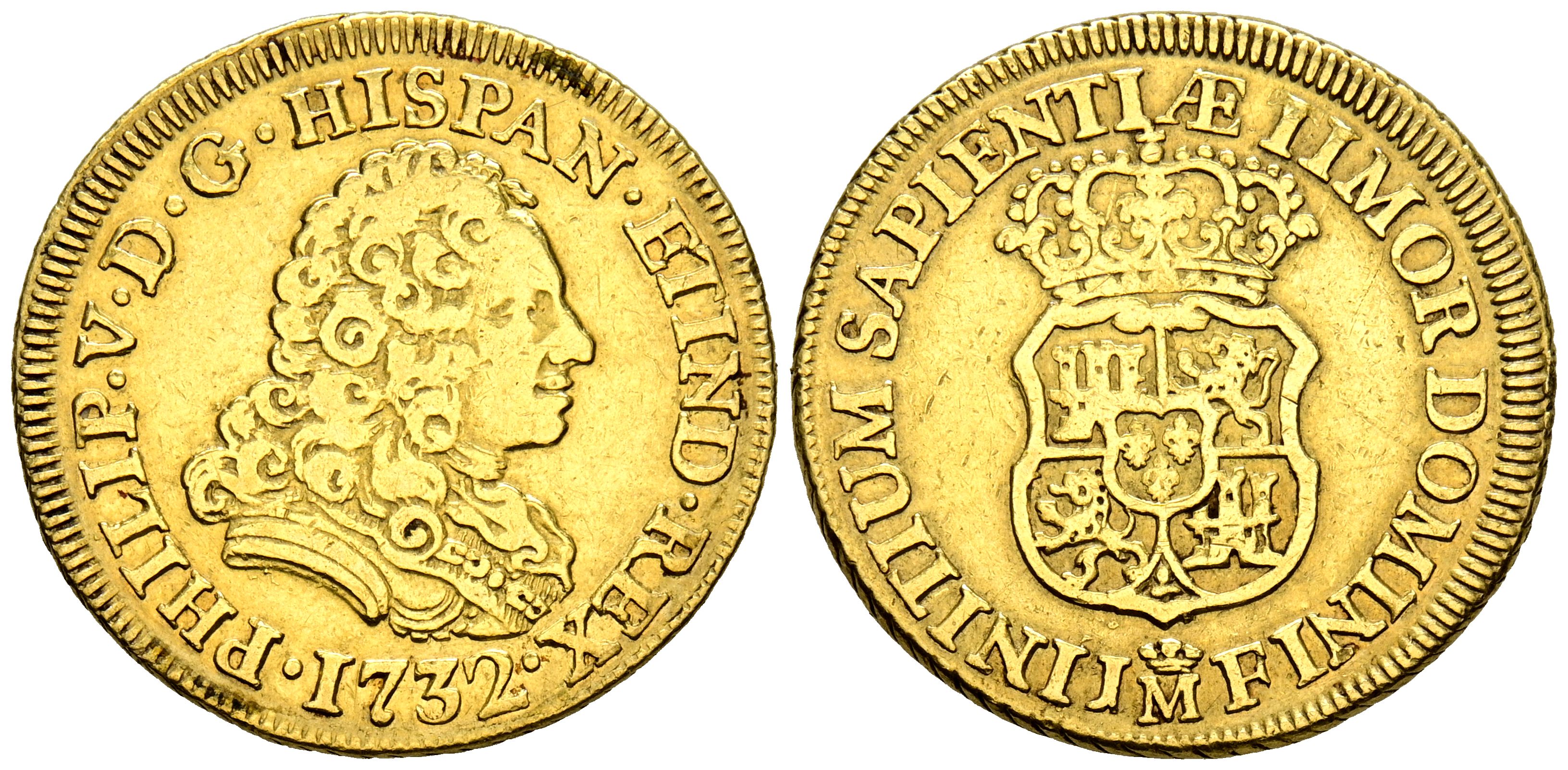 FELIPE V (1700-1746). 2 Escudos. (Au. 6,70g/23mm). 1732. Madrid JF. (Cal-2019-1868). MBC. Muy escasa.