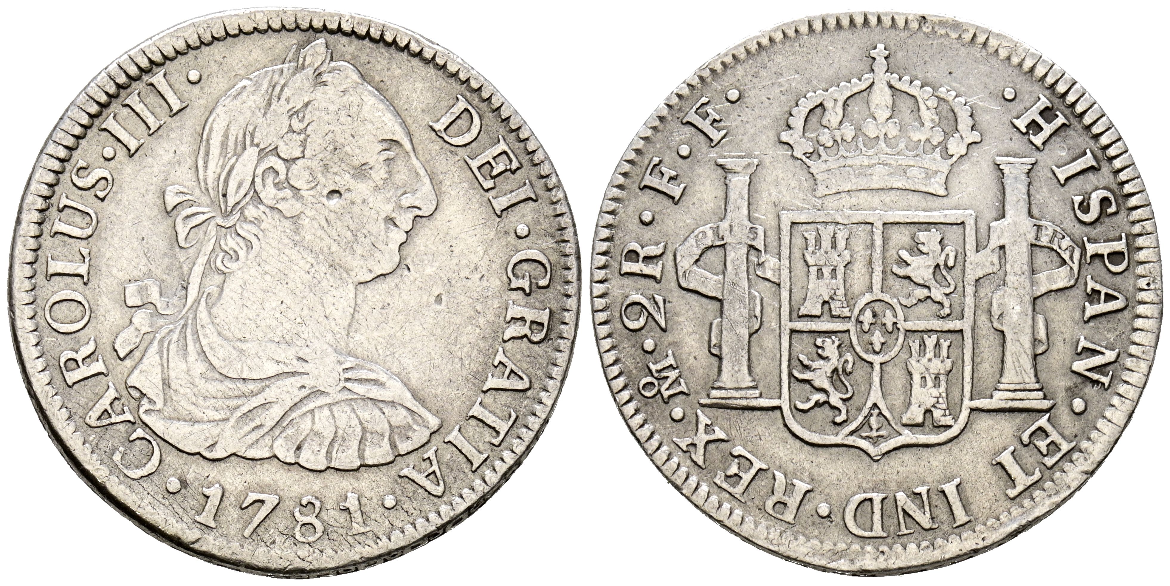 CARLOS III (1759-1788). 2 Reales. (Ar. 6,62g/28mm). 1781. Mexico FF. (Cal-2019-670). MBC.