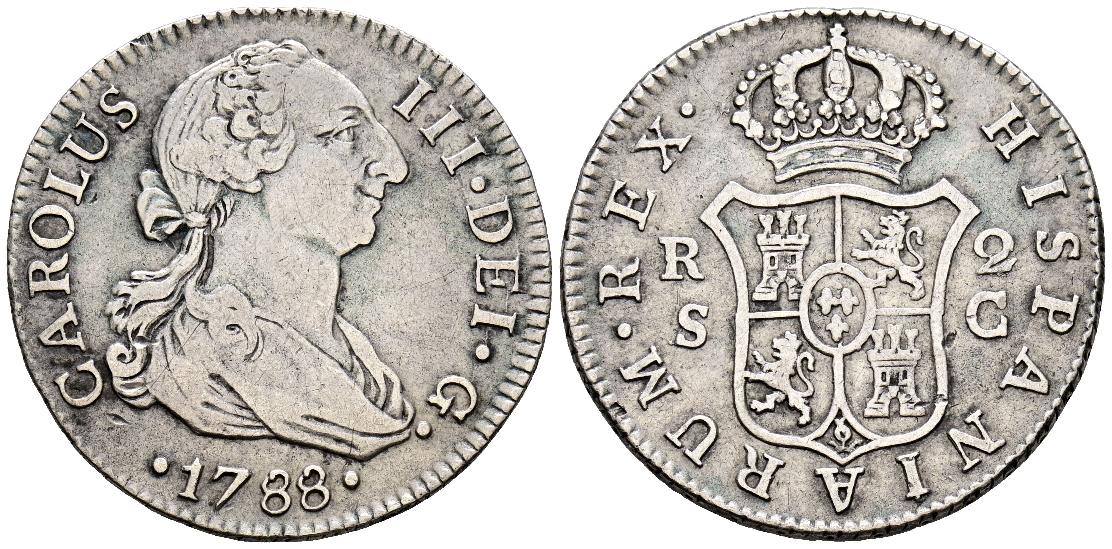 CARLOS III (1759-1788). 2 Reales. (Ar. 5,76g/27mm). 1788. Sevilla C. (Cal-2019-790). MBC.