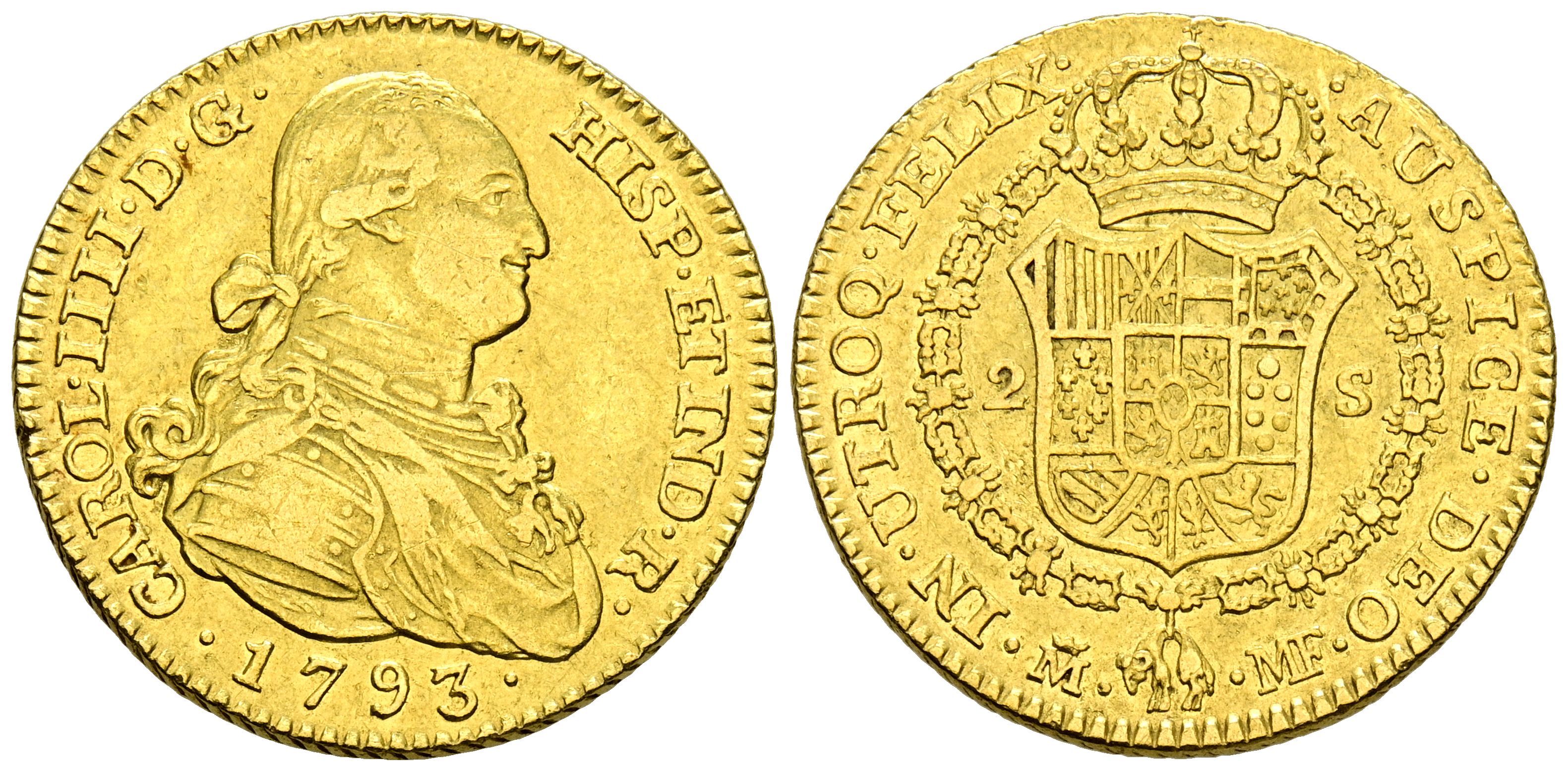 CARLOS IV (1788-1808). 2 Escudos. (Au. 6,80g/22mm). 1793. Madrid MF. (Cal-2019-1279). MBC.
