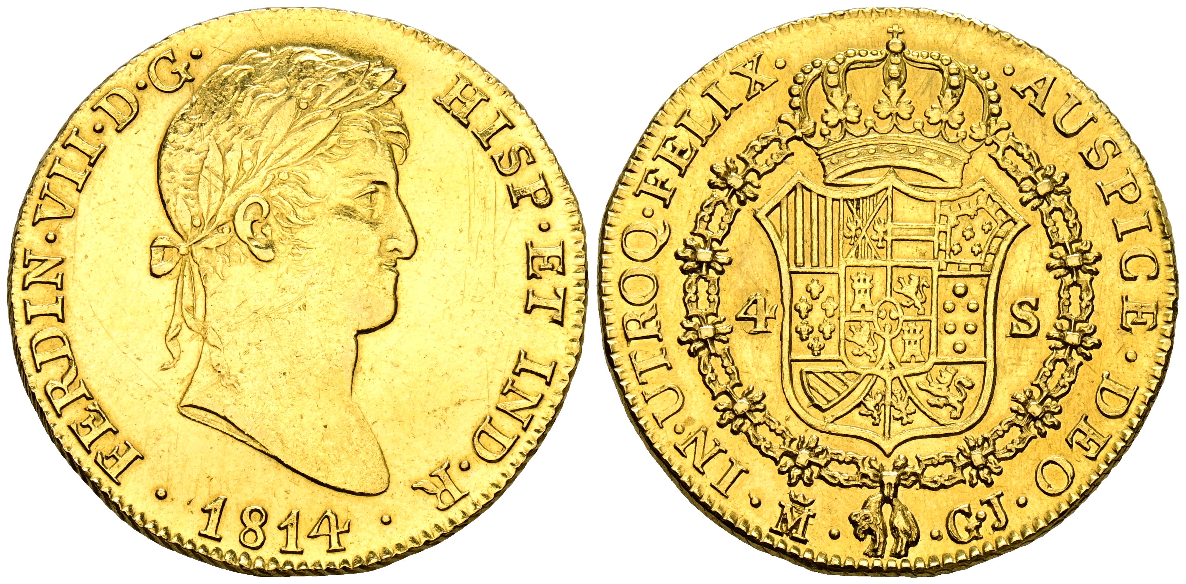 FERNANDO VII (1808-1833). 4 Escudos. (Au. 13,46g/28mm). 1814. Madrid GJ. (Cal-2019-1709). EBC-. Abrillantada.