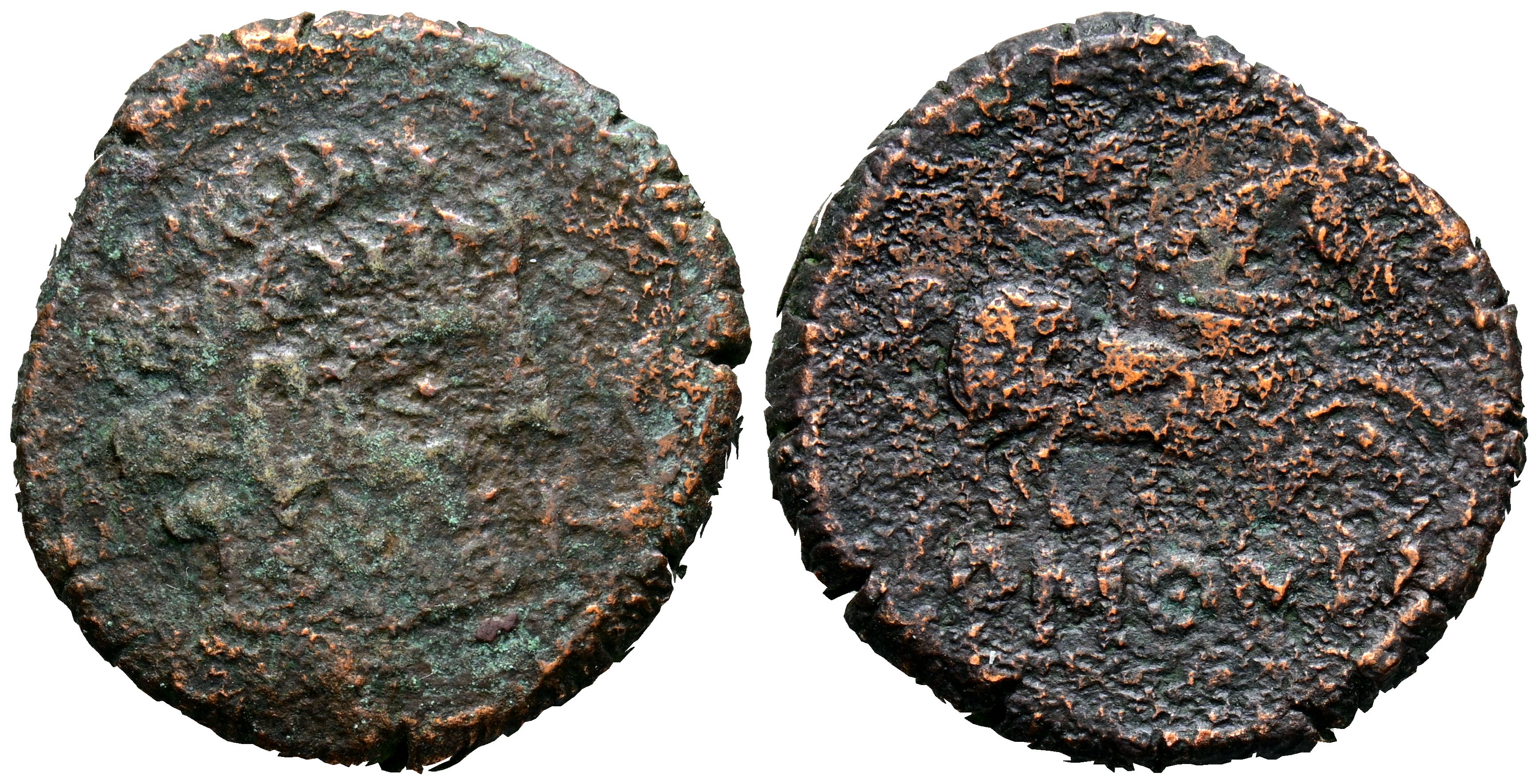 BARSCUNES (Pamplona, Navarra). As. (Ae. 10,77g/26mm). 120-20 a.C. (FAB-223). Anv: Cabeza masculina a derecha, delante delfín. Rev: Jinete con espada a derecha, debajo leyenda ibérica: BaRSCuNES. BC.