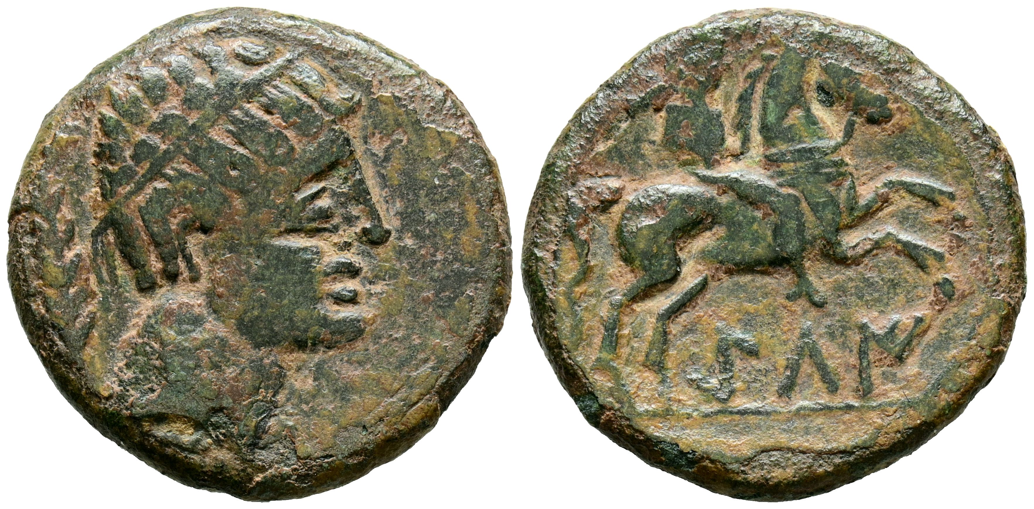 GILI (Gilet, Valencia). As. (Ae. 8,96g/25mm). 120-20 a.C. (FAB-1388). Anv: Cabeza masculina con diadema a la derecha, detrás espiga. Rev: Jinete con palma a la derecha, debajo leyenda ibérica en línea: GiLI. MBC.