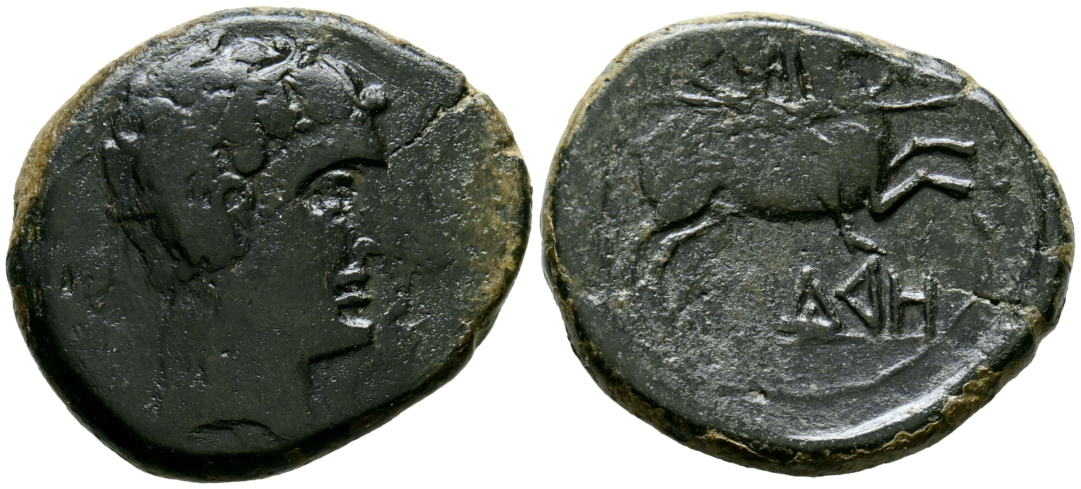 ILDURO (Mataró, Barcelona). As. (Ae. 13,69g/30mm). 120-20 a.C. (FAB-1438). Anv: Cabeza masculina diademada a derecha, detrás oreja. Rev: Jinete con lanza y capa a derecha, debajo leyenda ibérica sobre línea: ILDuRO. MBC-.