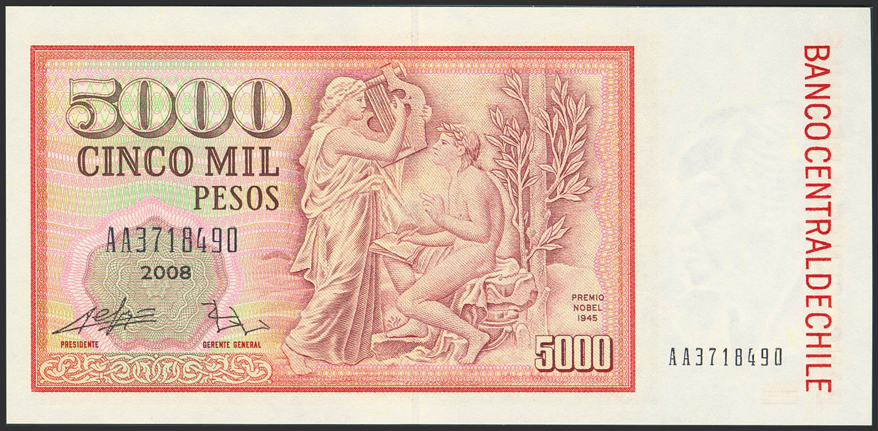 CHILE. 5000 Pesos. 2008. (Pick: 155). Uncirculated.
