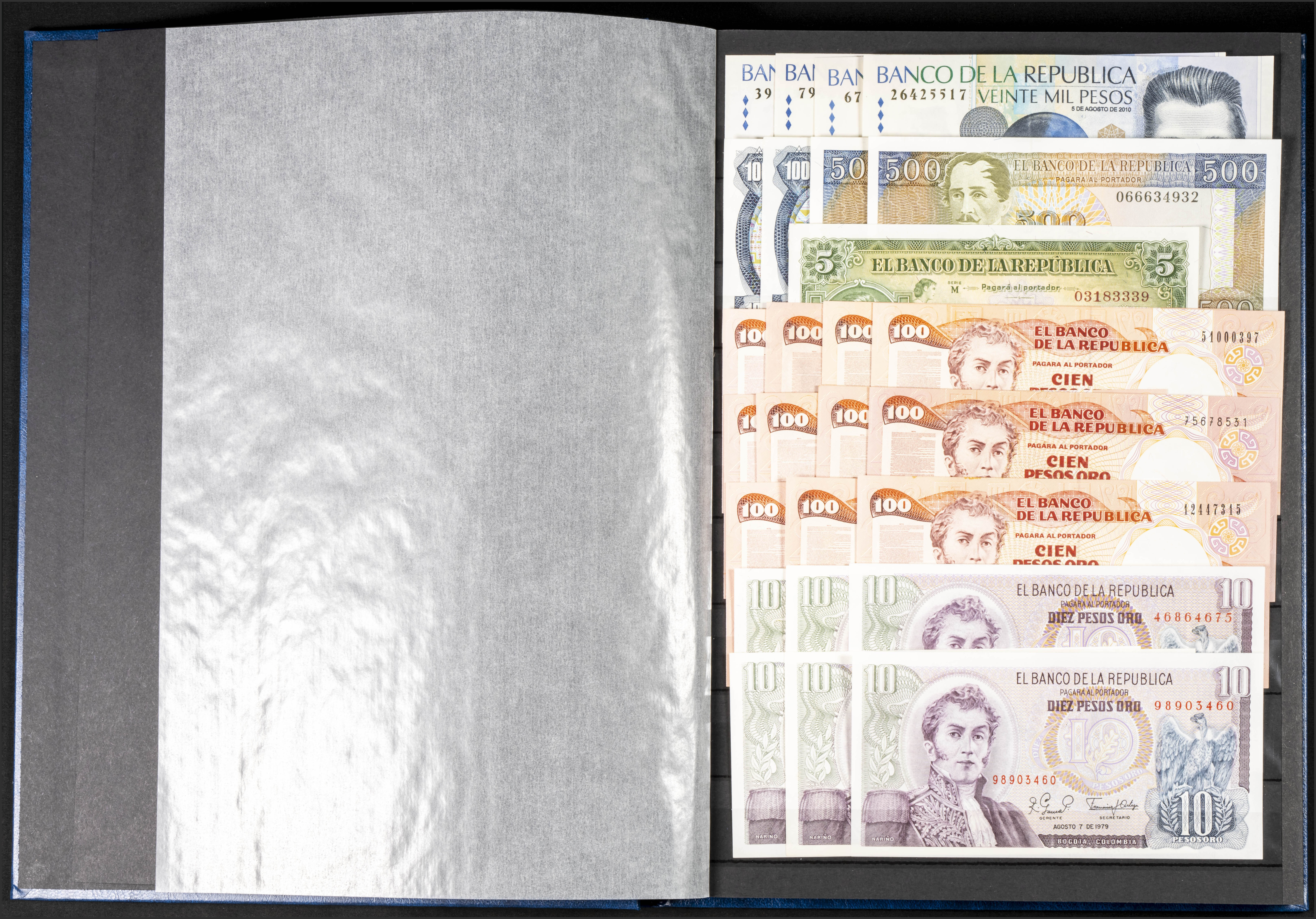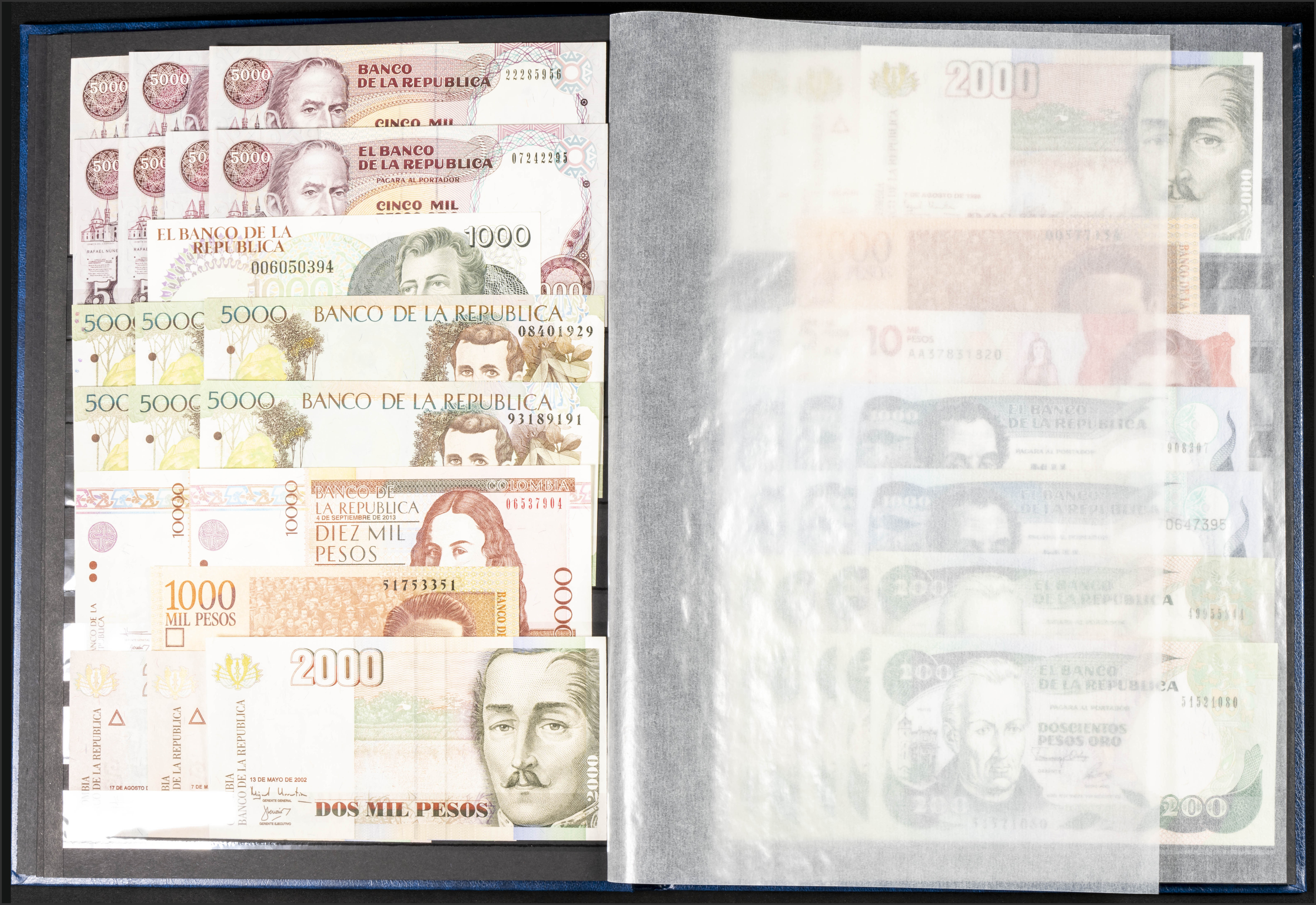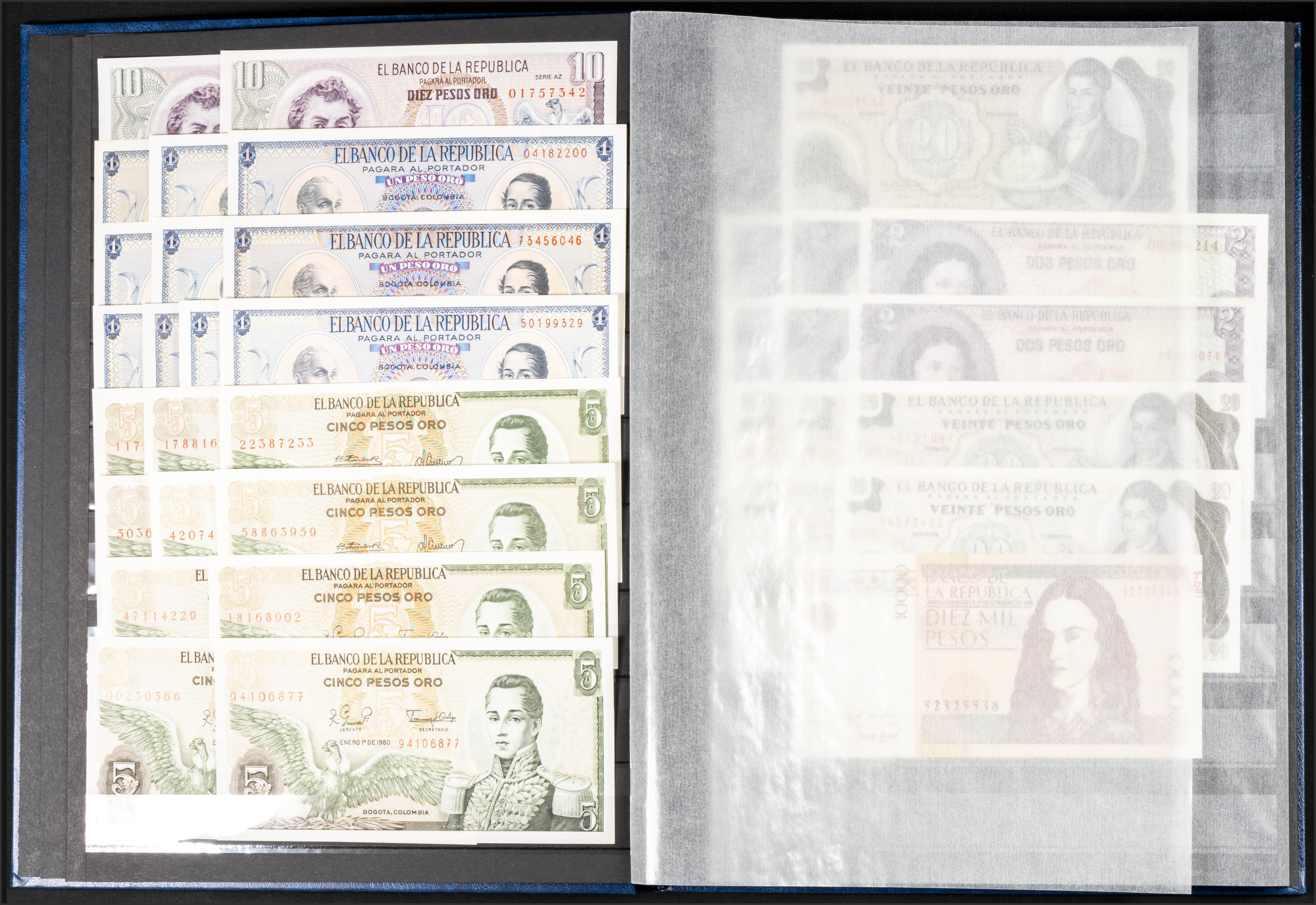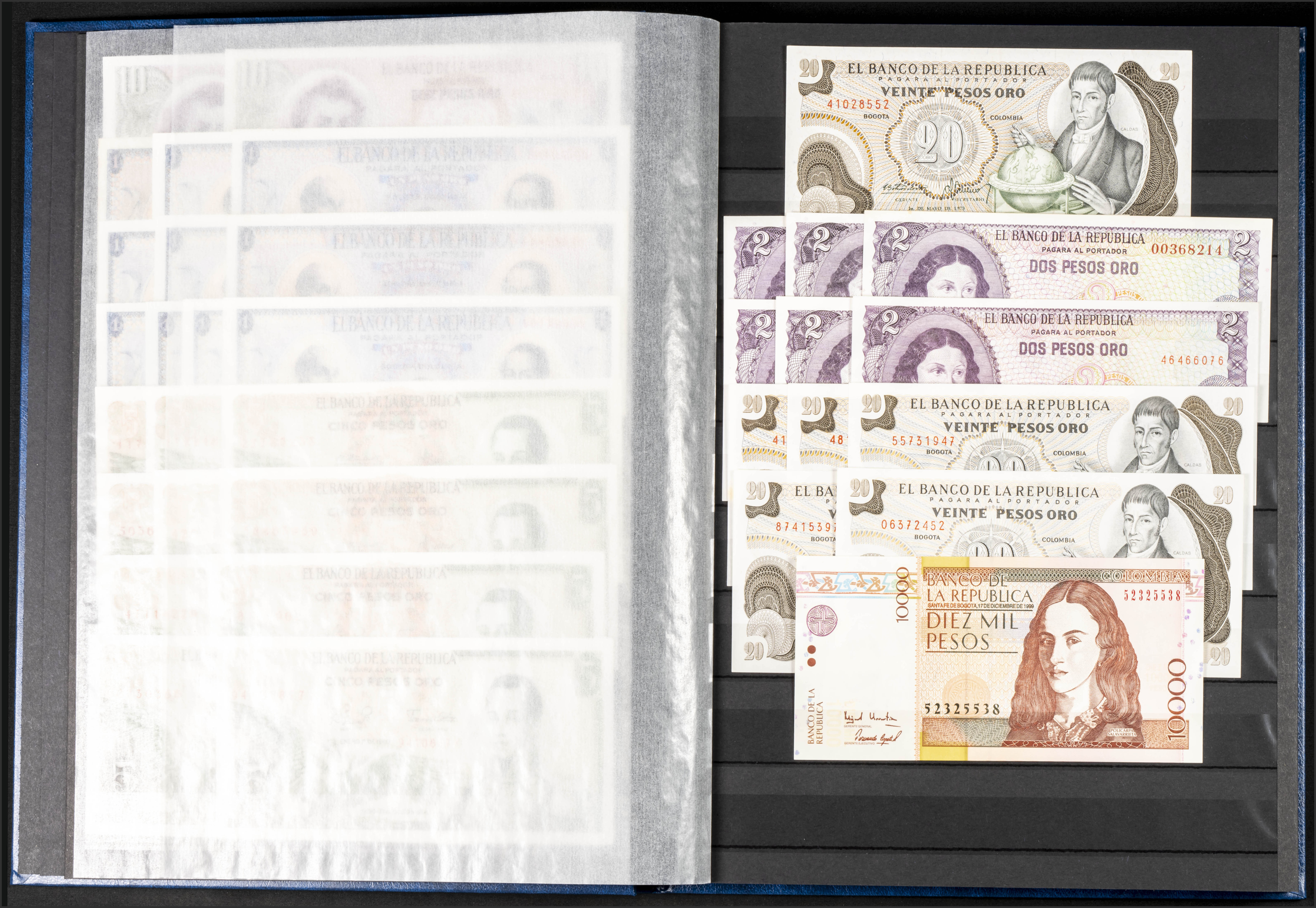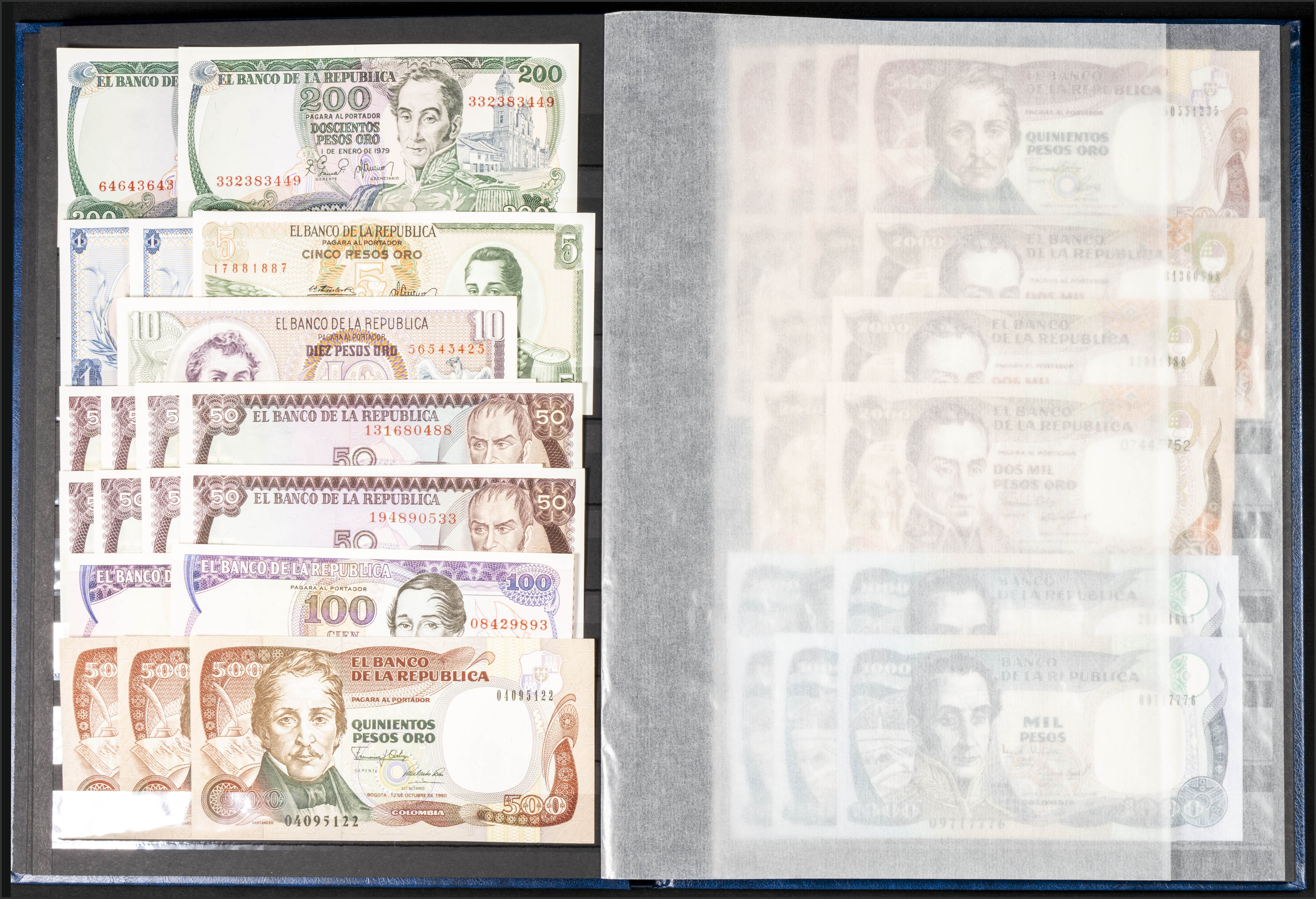 VERY INTERESTING SET of more than 140 banknotes of Colombia of various issues and most of them nice qualities, including high denomination notes as well as some rare notes such as Pick, 435, 436, 436A, 443, 448, 458. TO EXAMINE.