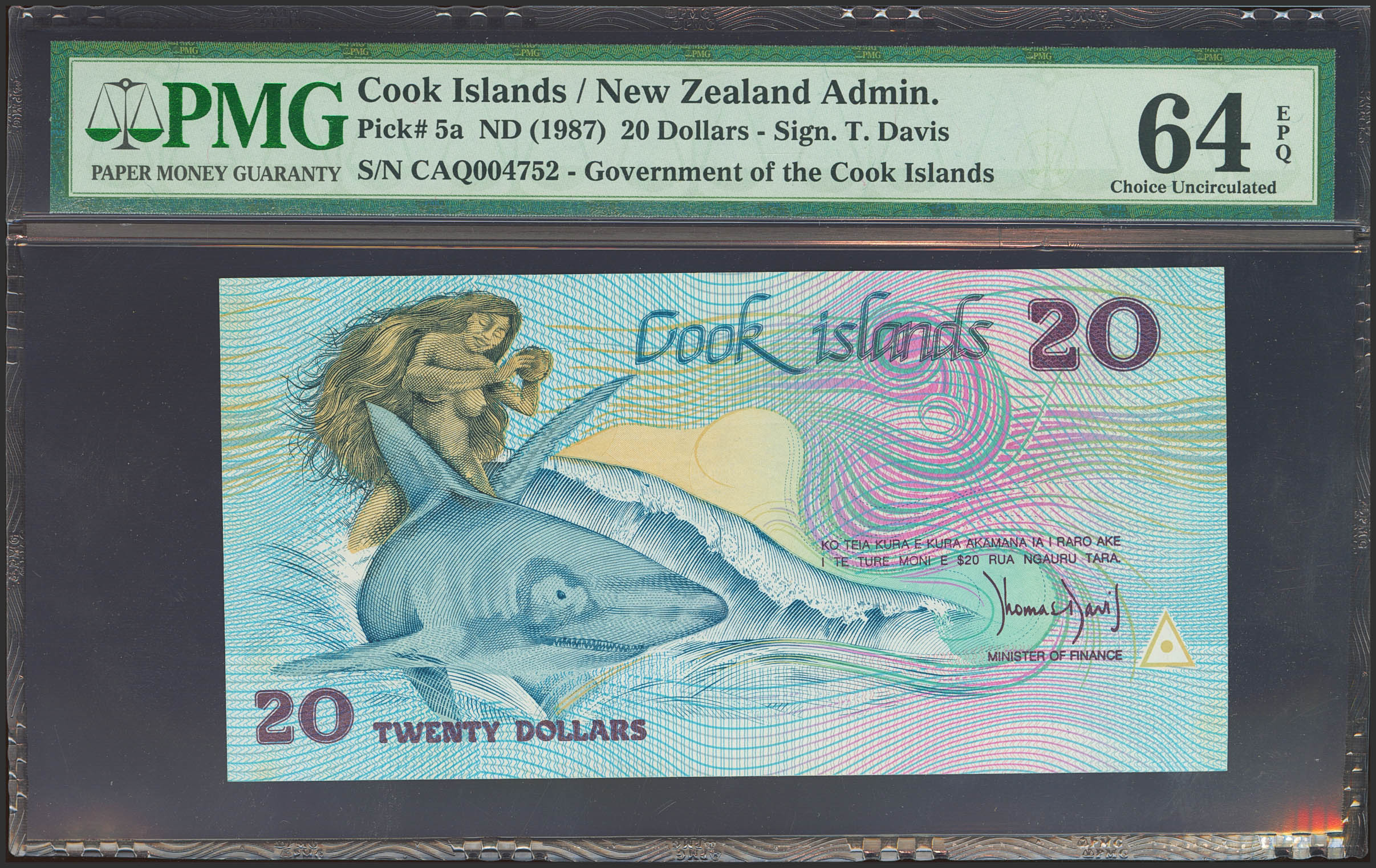 COOK ISLANDS. 20 Dollars. (1987ca). (Pick: 5a). PMG64EPQ.