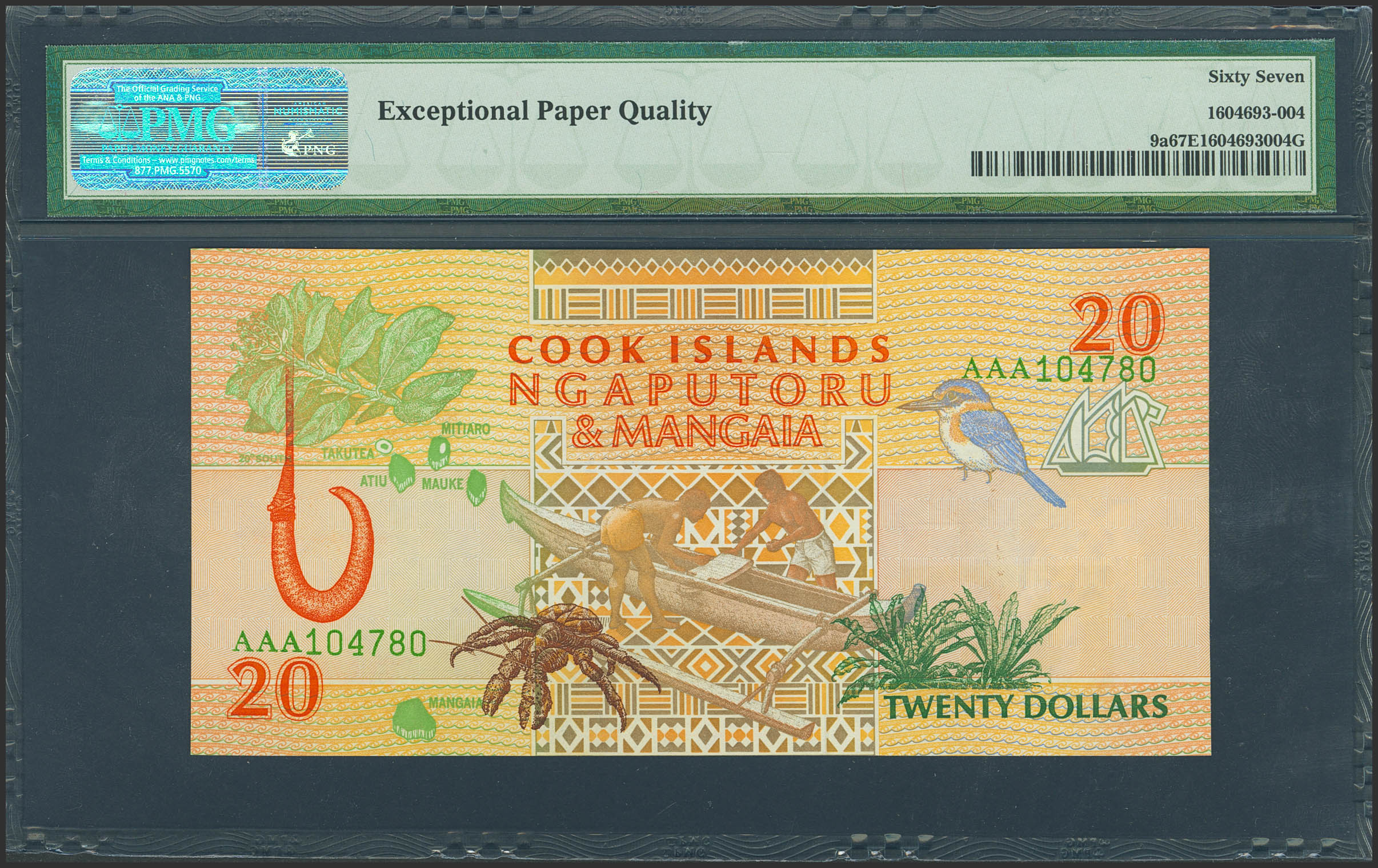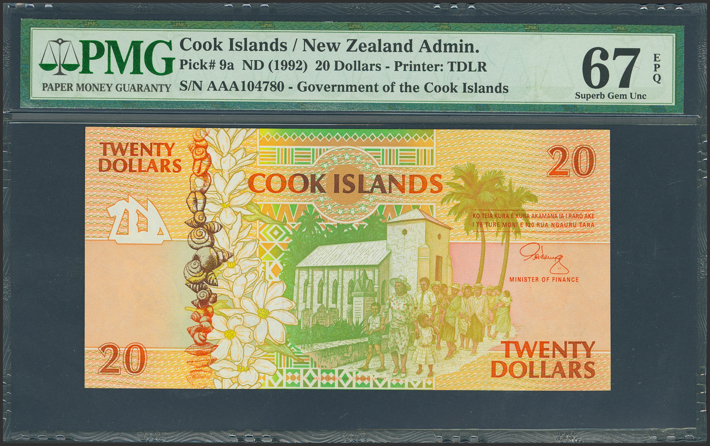 COOK ISLANDS. 20 Dollars. (1992ca). (Pick: 9a). PMG67EPQ.