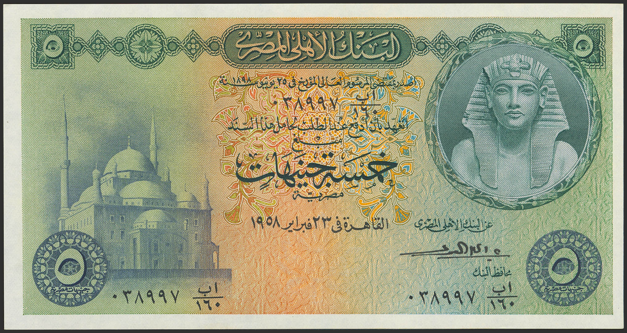 EGYPT. 5 Pounds. (1957ca). (Pick: 31). Less than Uncirculated.