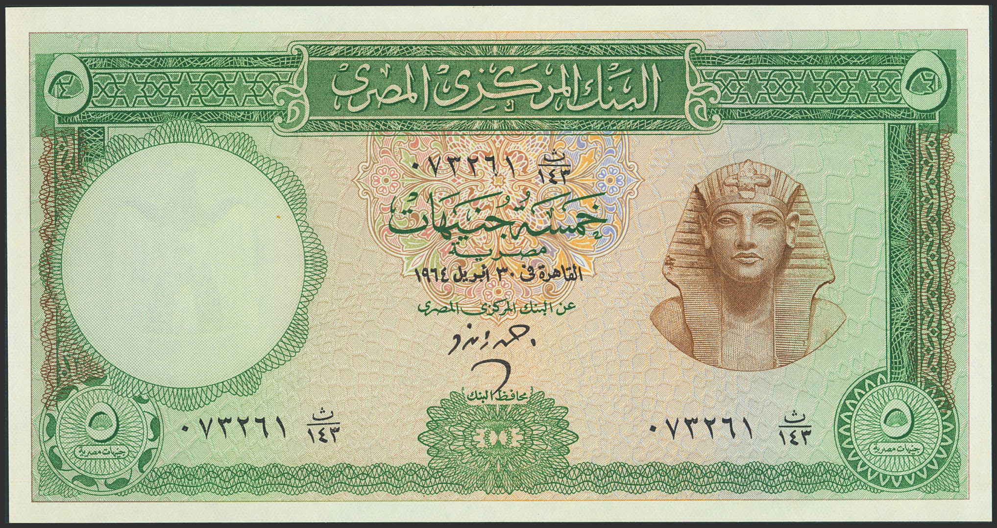 EGYPT. 5 Pounds. (1964ca). (Pick: 39a). Less than Uncirculated.