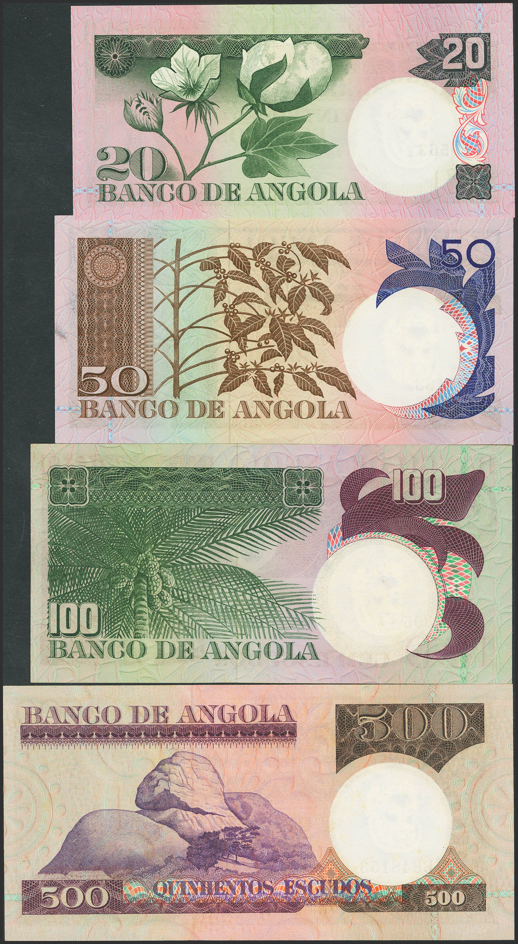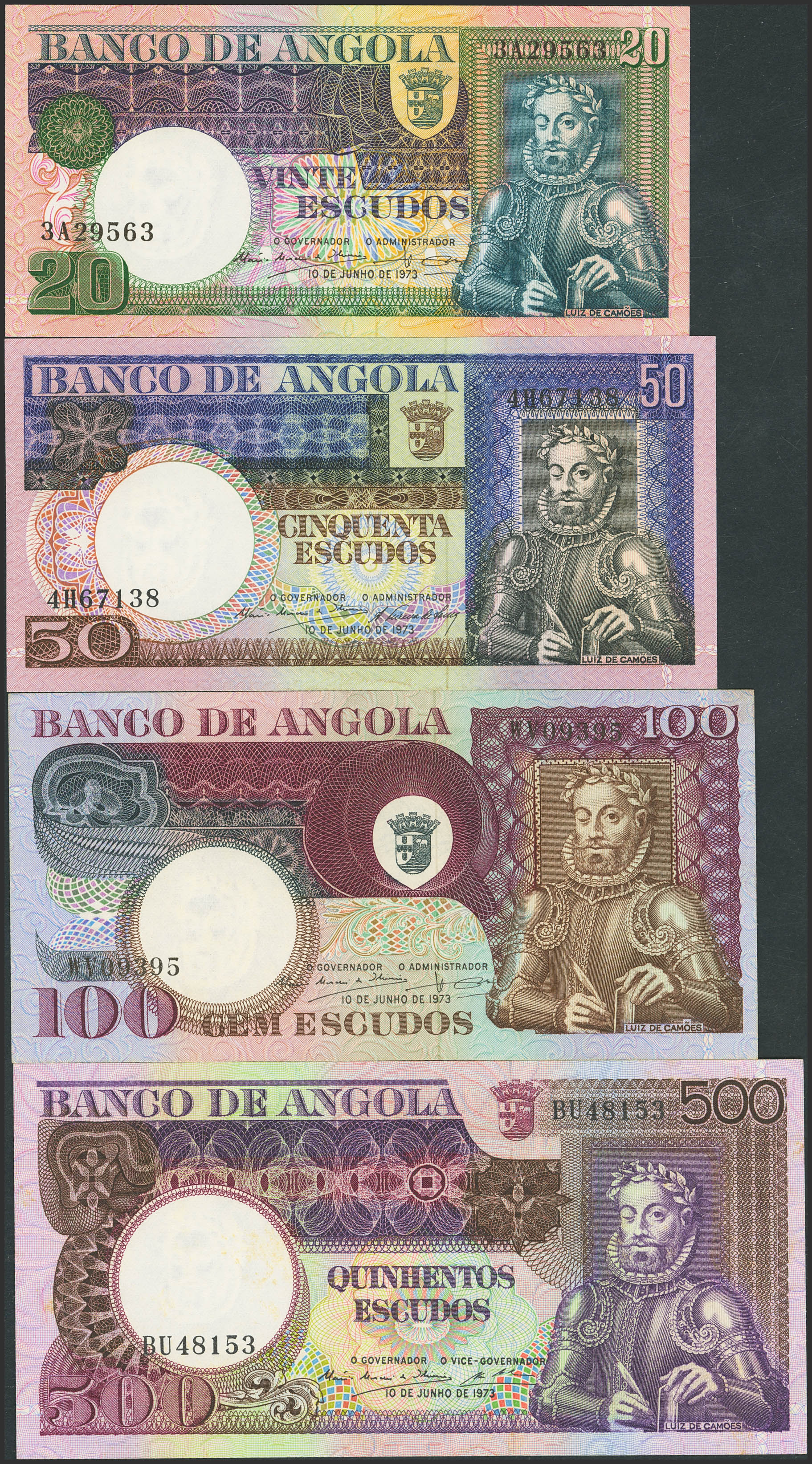 Set of 4 banknotes of Angola of 20 Escudos, 50 Escudos, 100 Escudos and 500 Escudos. 10 June 1973. (Pick: 104, 105, 106, 107). Uncirculated / Less than Uncirculated.