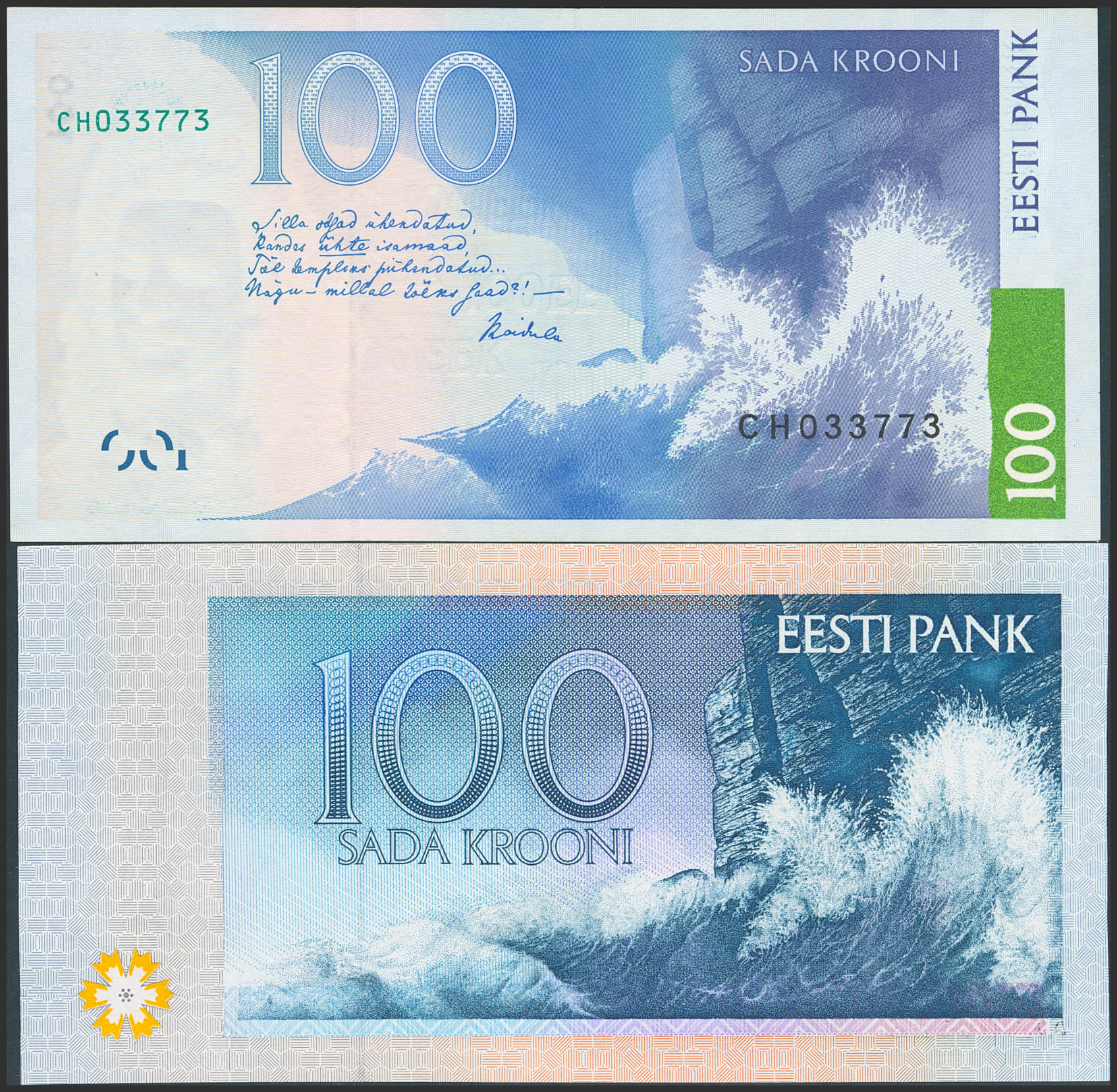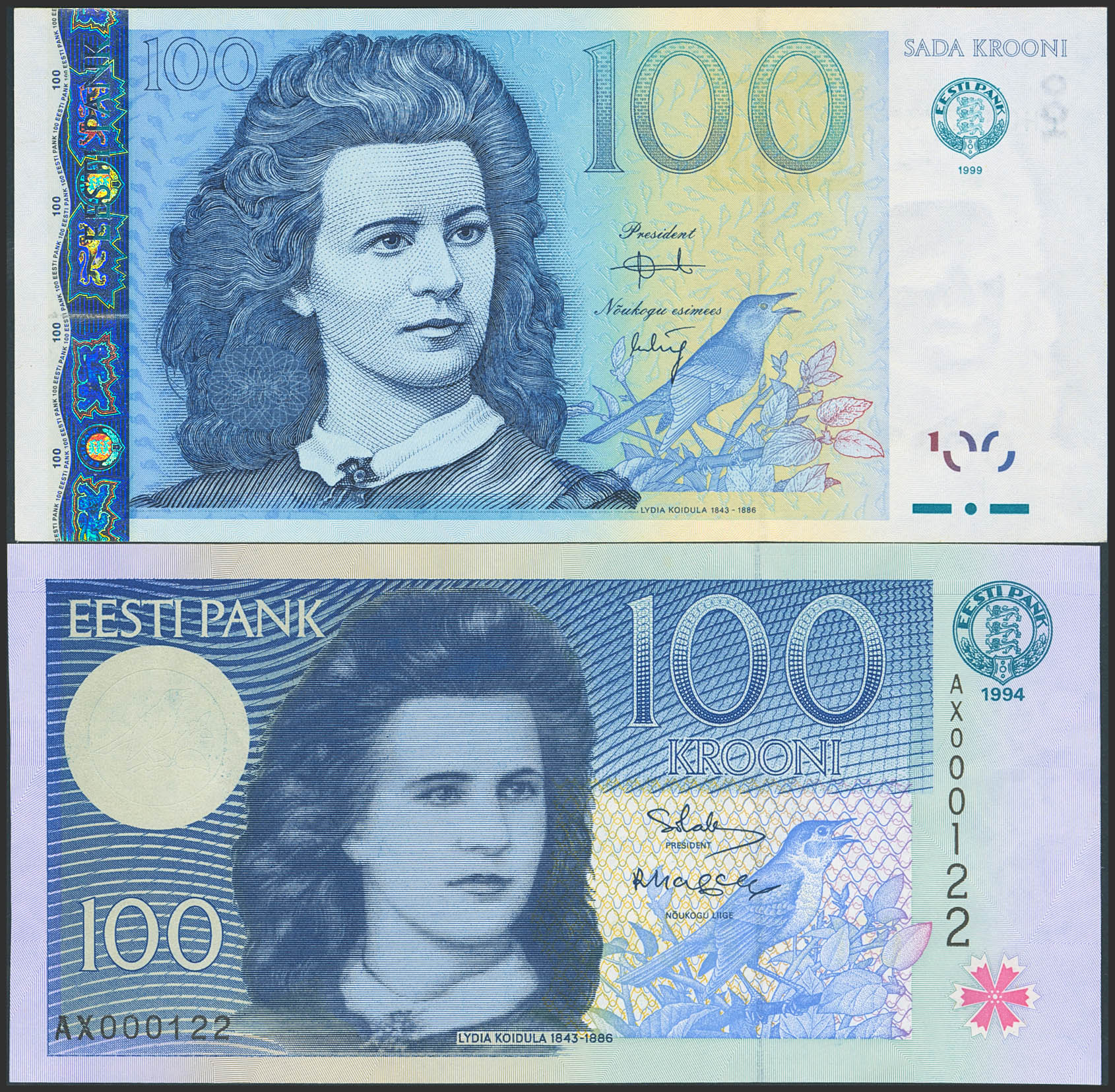 Set of 2 banknotes of Estonia of 100 Kroni. 1994, 1999. (Pick: 79, 82). Uncirculated / Extremely Fine.