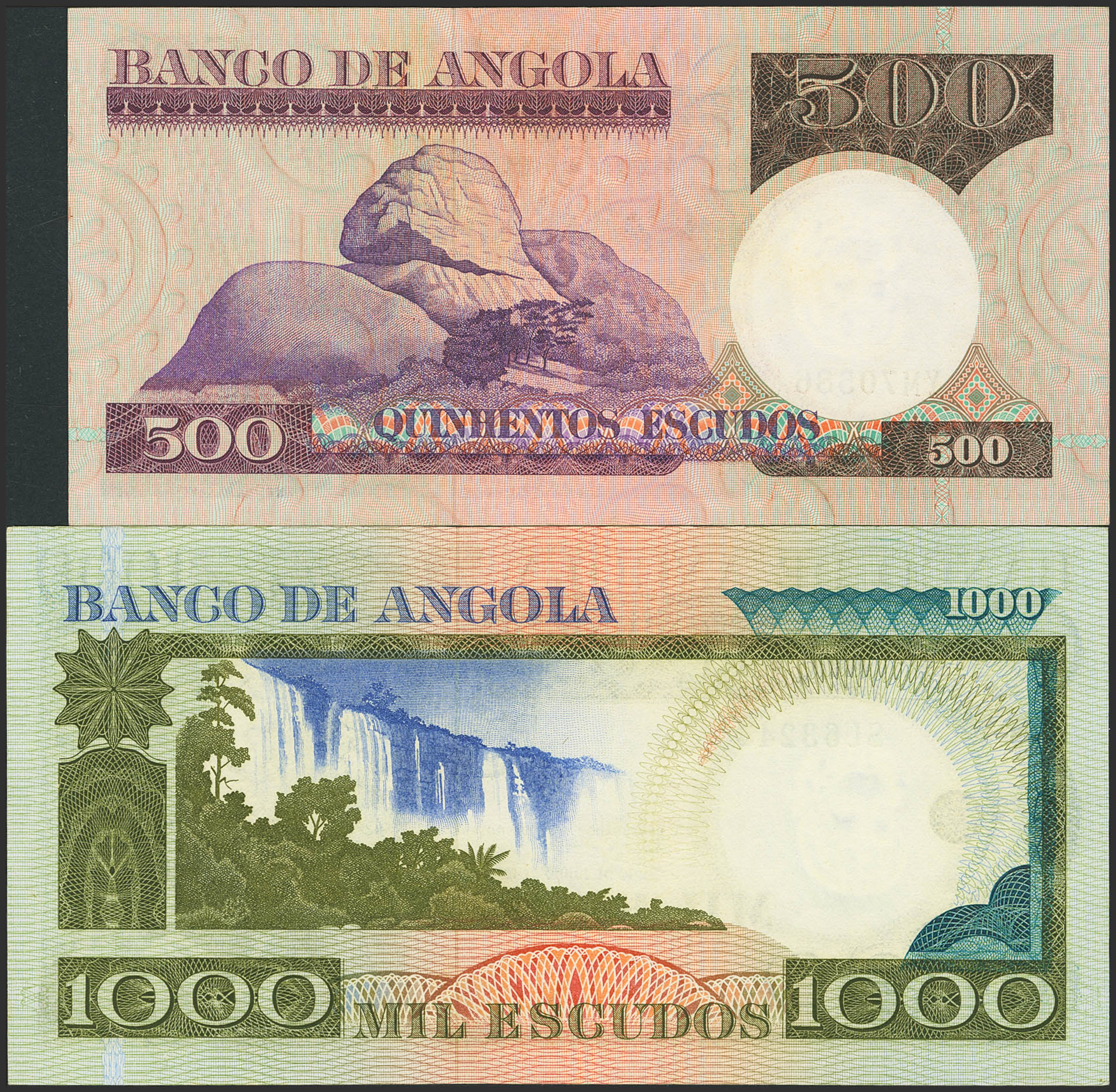 Set of 2 banknotes of Angola of 500 Escudos and 1000 Escudos. 10 June 1973. (Pick: 107, 108). Extremely Fine.