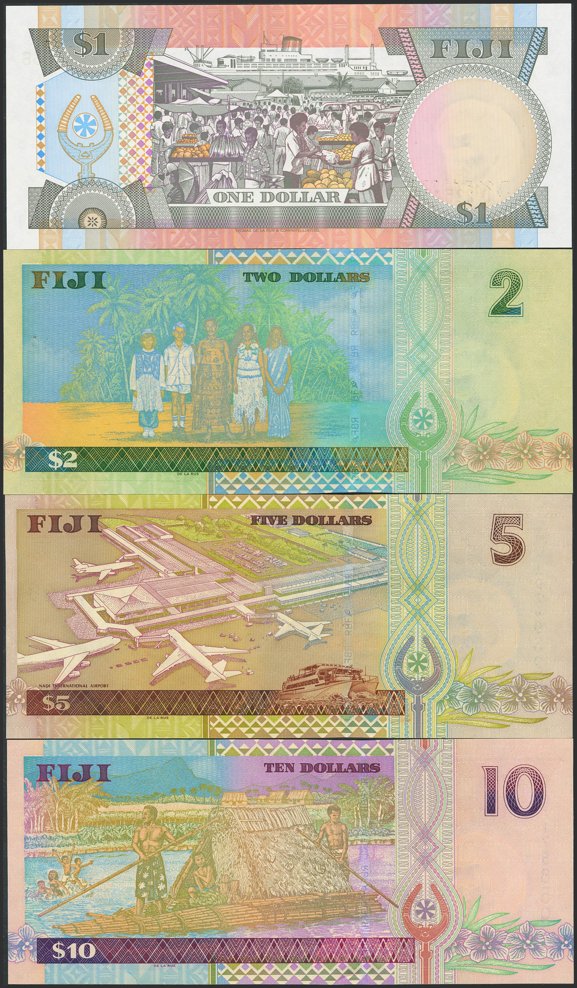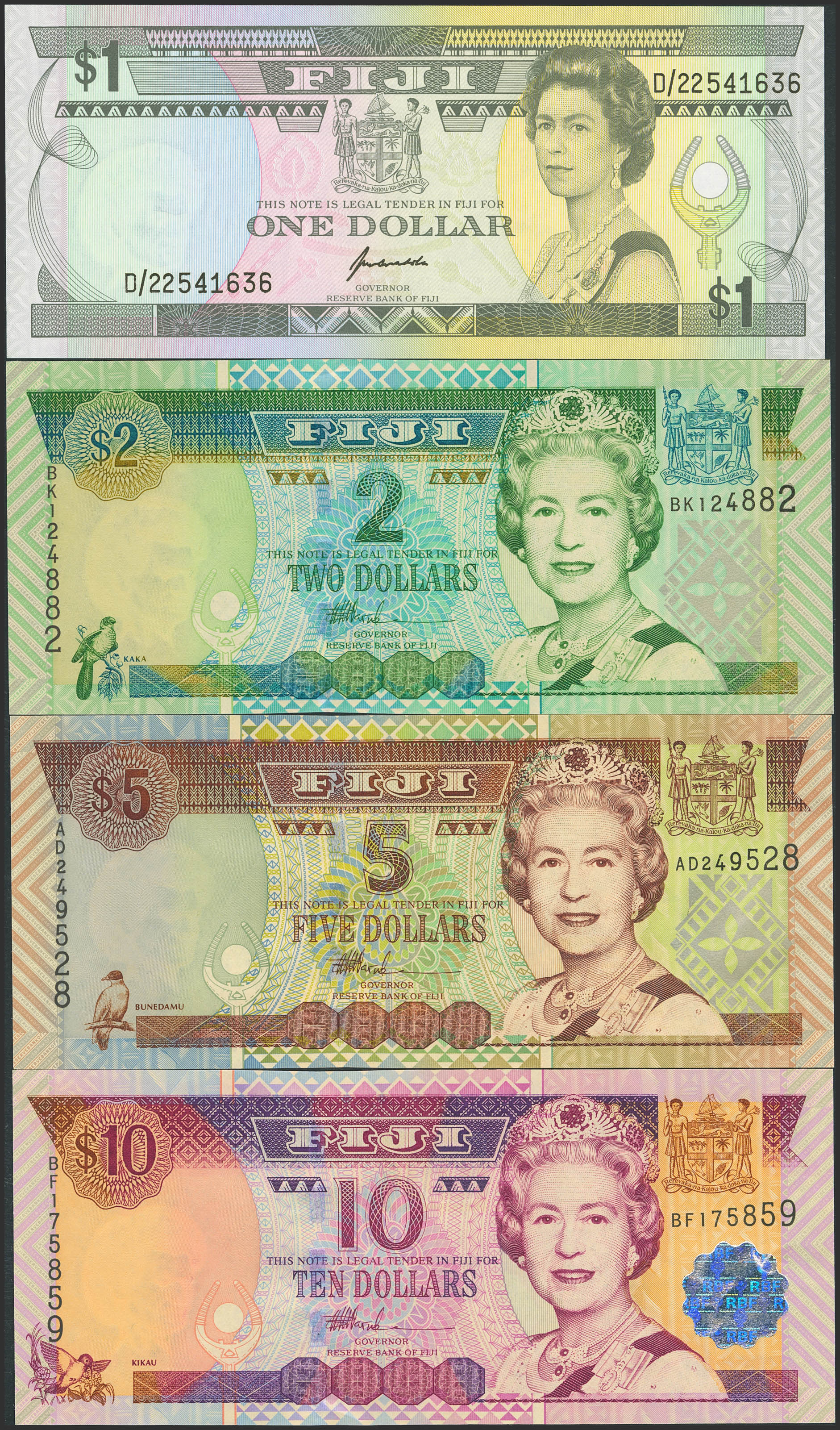 Set of 4 banknotes of Fiji of 1 Dollar, 2 Dollars, 5 Dollars and 10 Dollars. (2002ca). (Pick: 89, 104, 105, 106). Uncirculated.