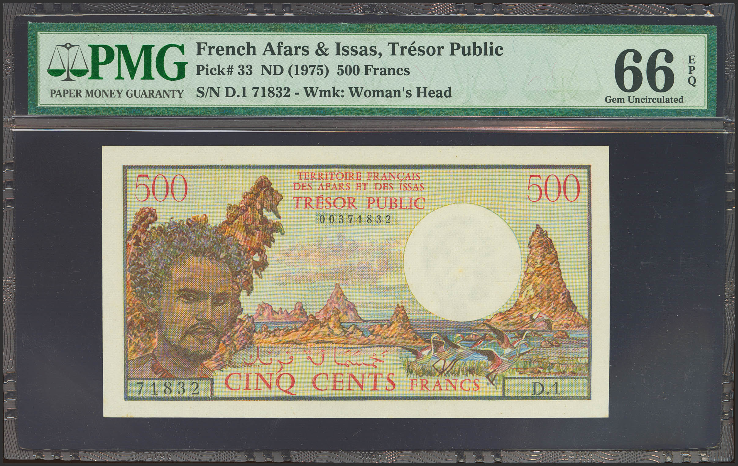 FRENCH AFARS AND ISSAS. 500 Francs. (1975ca). (Pick: 33). PMG66EPQ.