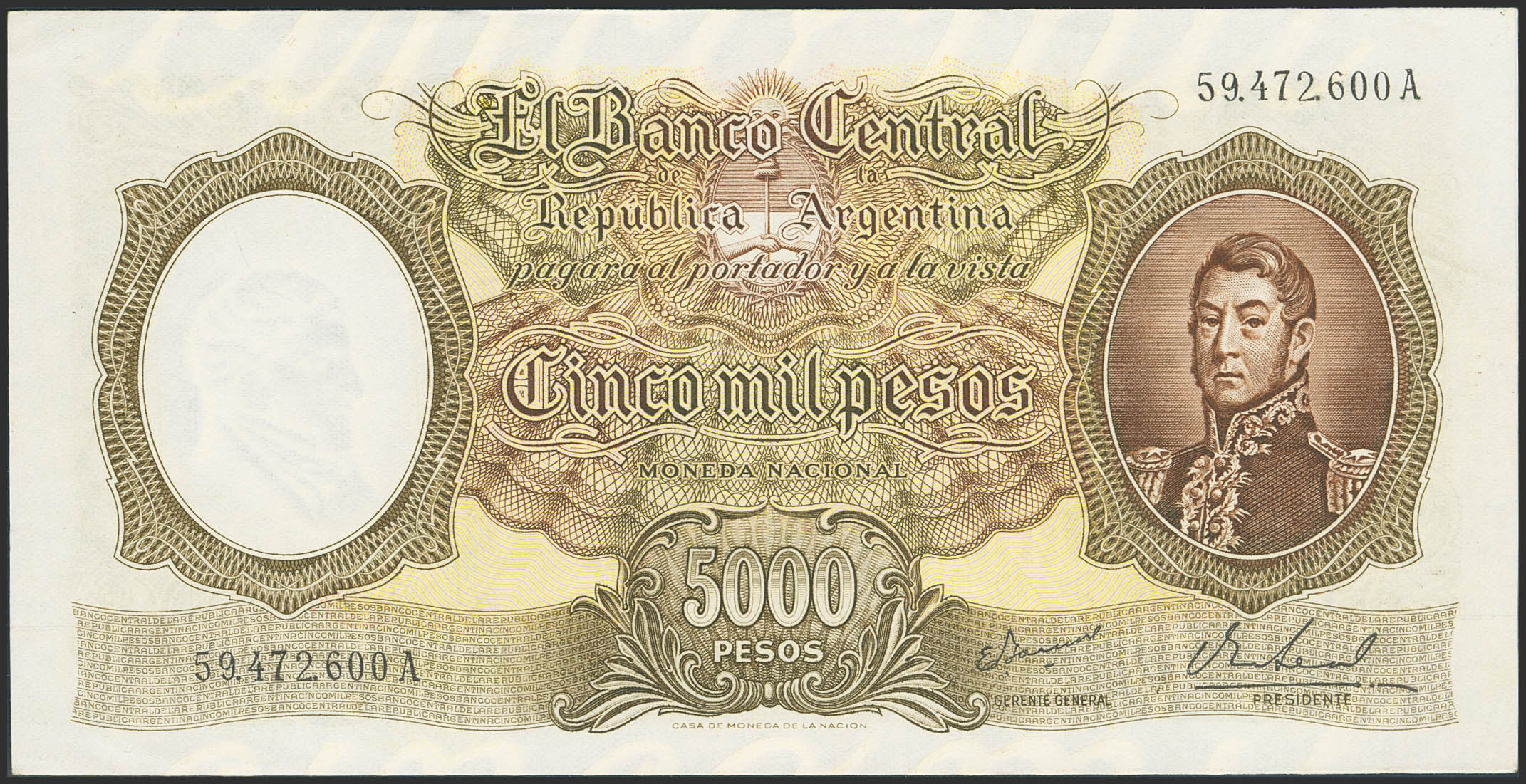 ARGENTINA. 5000 Pesos. (1962ca). (Pick: 280). Less than Uncirculated.