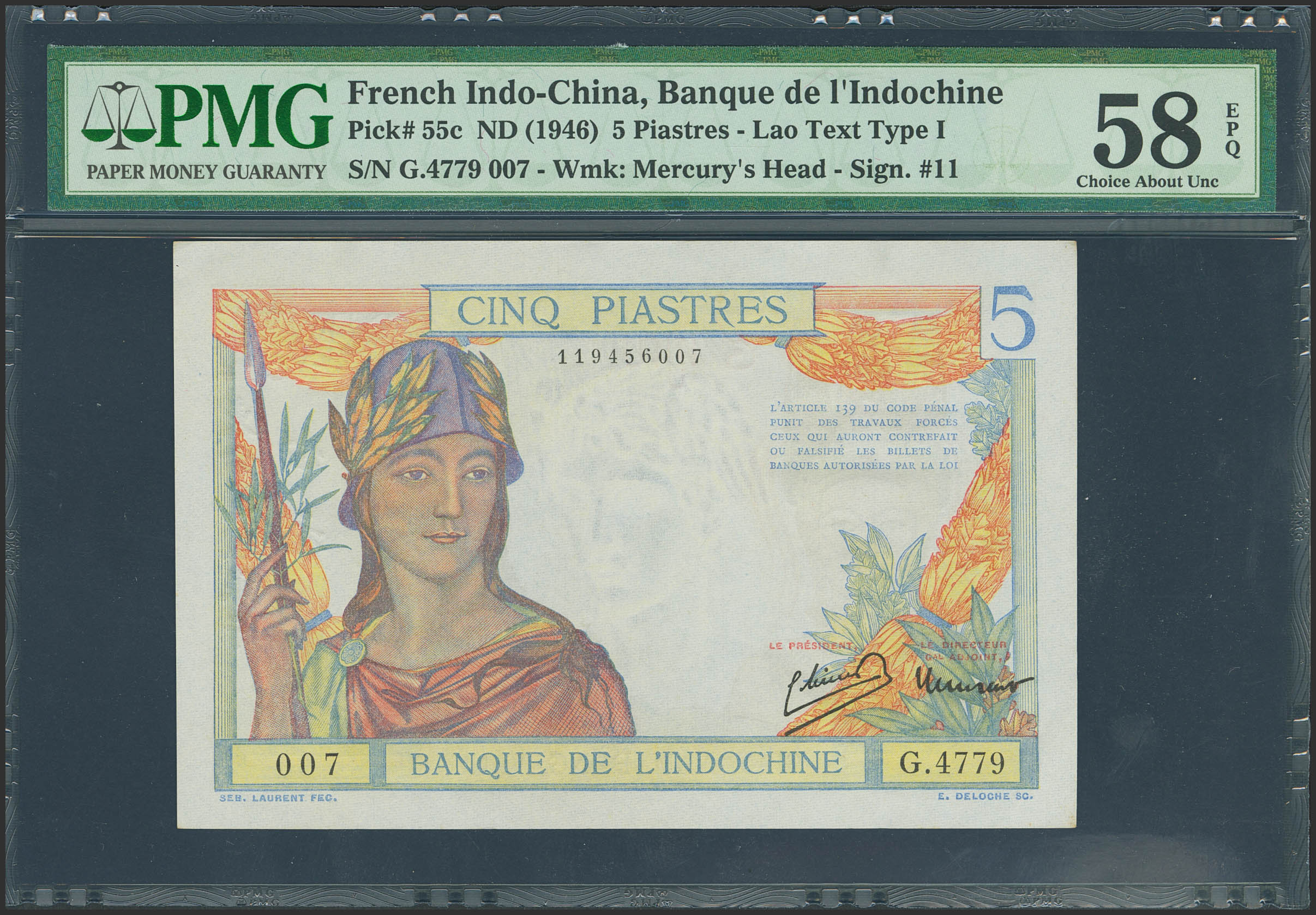 FRENCH INDO-CHINA. 5 Piastres. (1946ca). (Pick: 55c). PMG58EPQ.