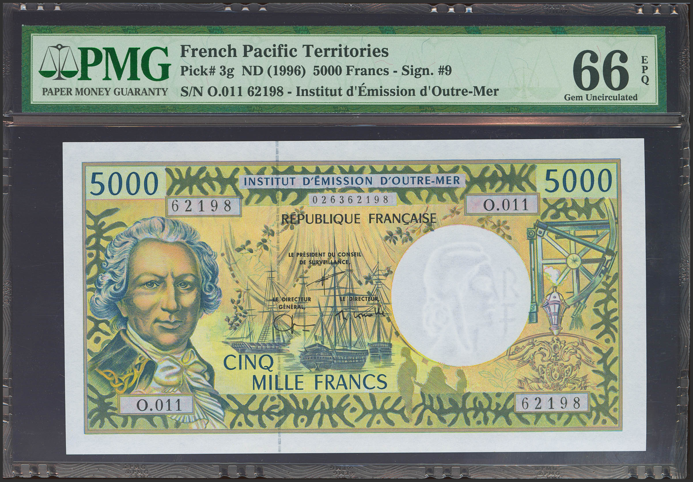 FRENCH PACIFIC TERROTORIES. 5000 Francs. (1996ca). (Pick: 3g). PMG66EPQ.