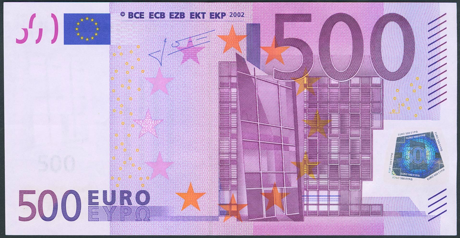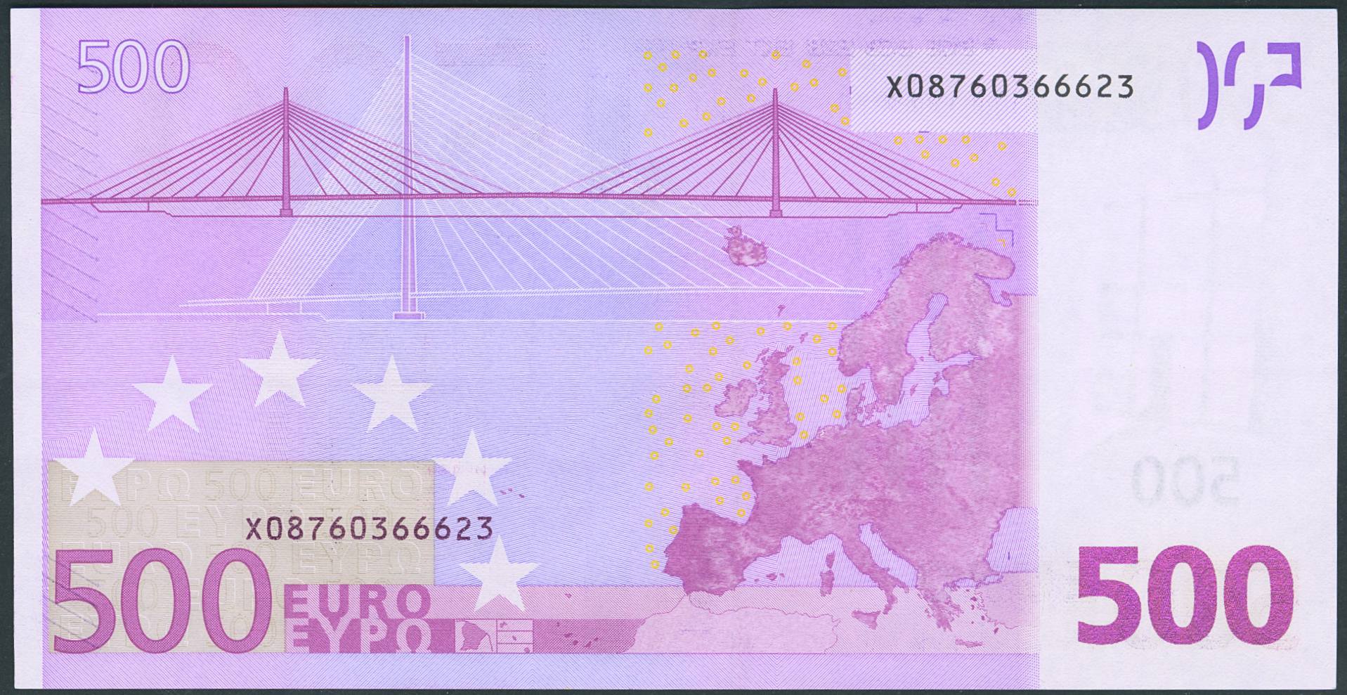 500 Euros. 1 January 2002. Trichet signature. Serial X (Germany) (Pick: 7x). Uncirculated.