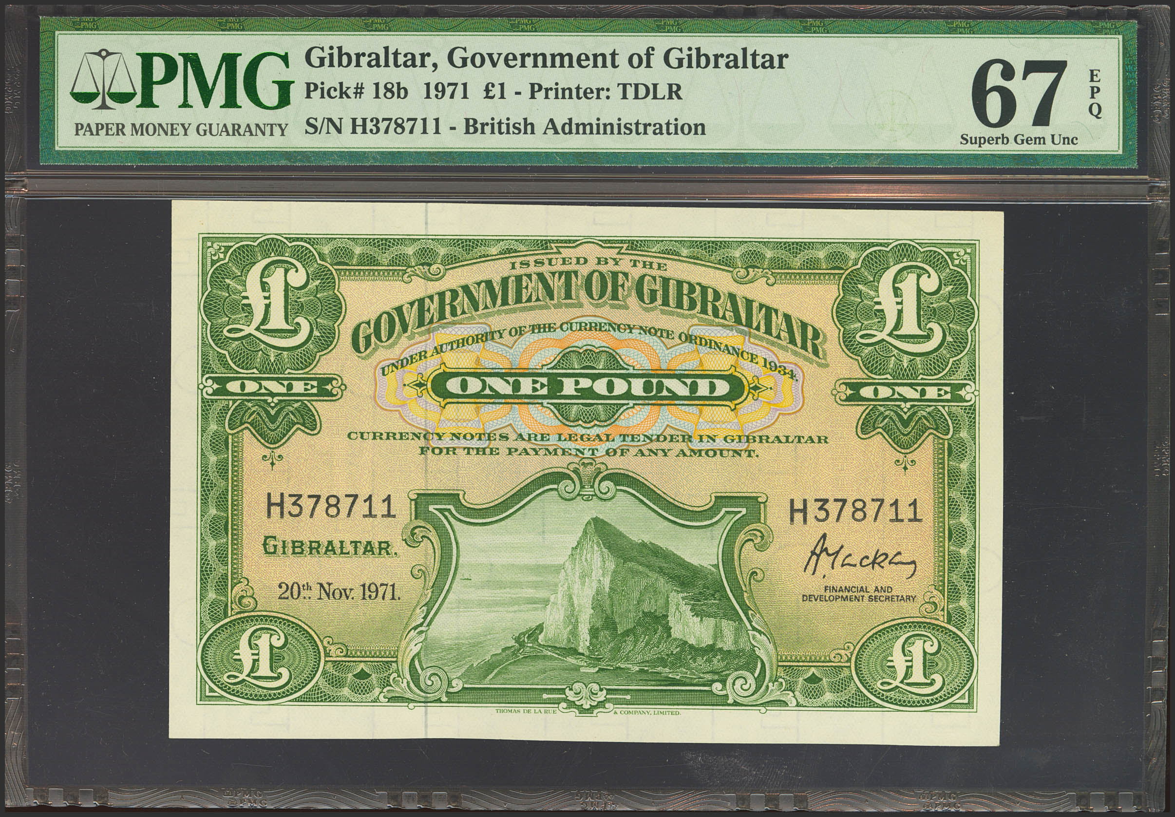 GIBRALTAR. 1 Pound. 20 November 1971. (Pick: 18b). PMG67EPQ.