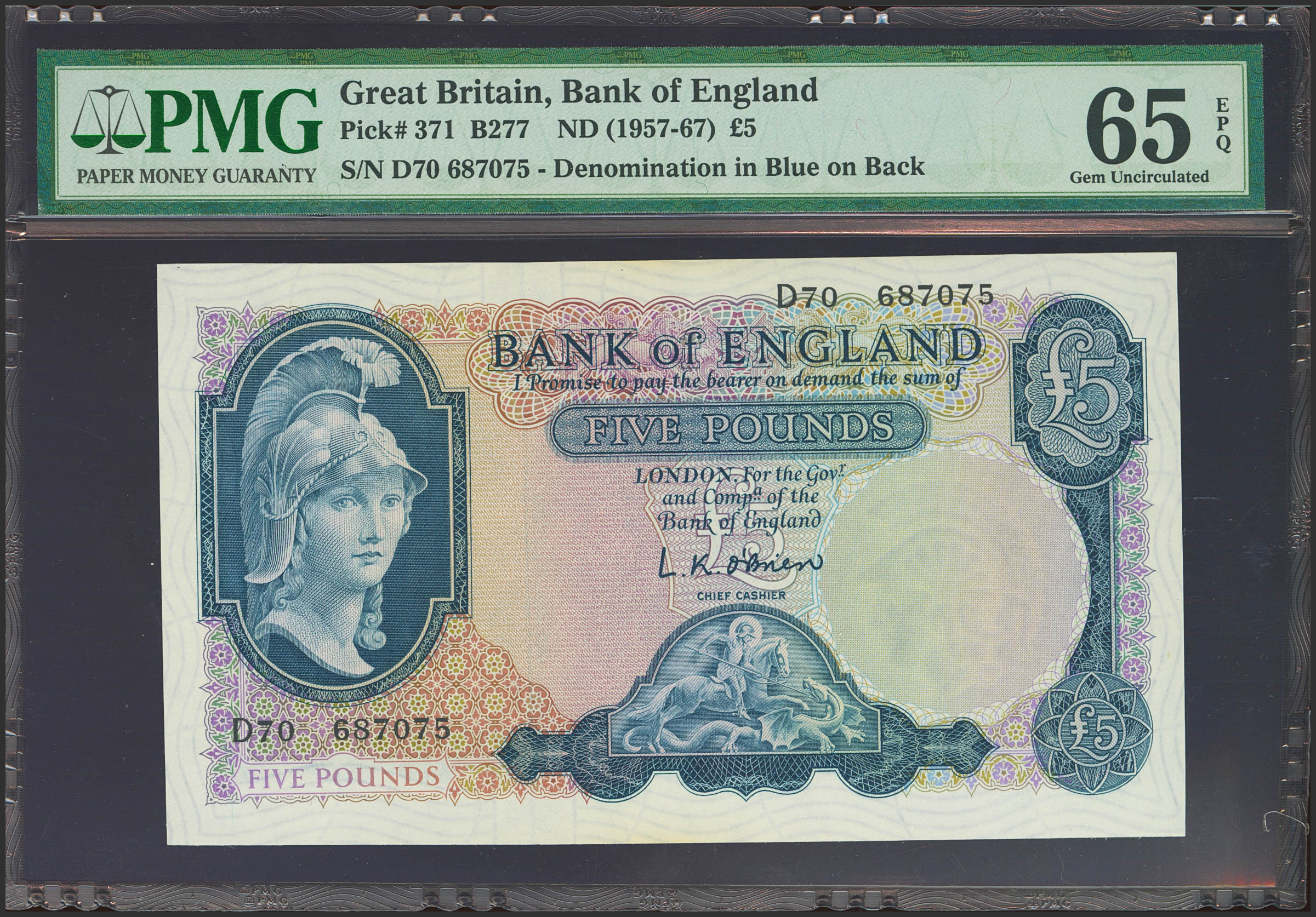 GREAT BRITAIN. 5 Pounds. (1957ca). (Pick: 371). PMG65EPQ.