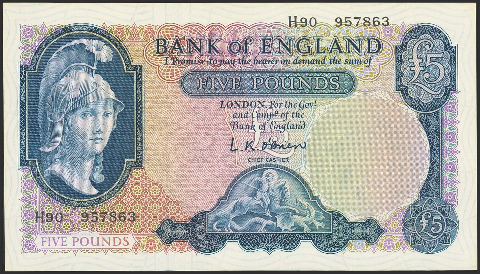 GREAT BRITAIN. 5 Pounds. (1957ca). (Pick: 371). Less than Uncirculated.