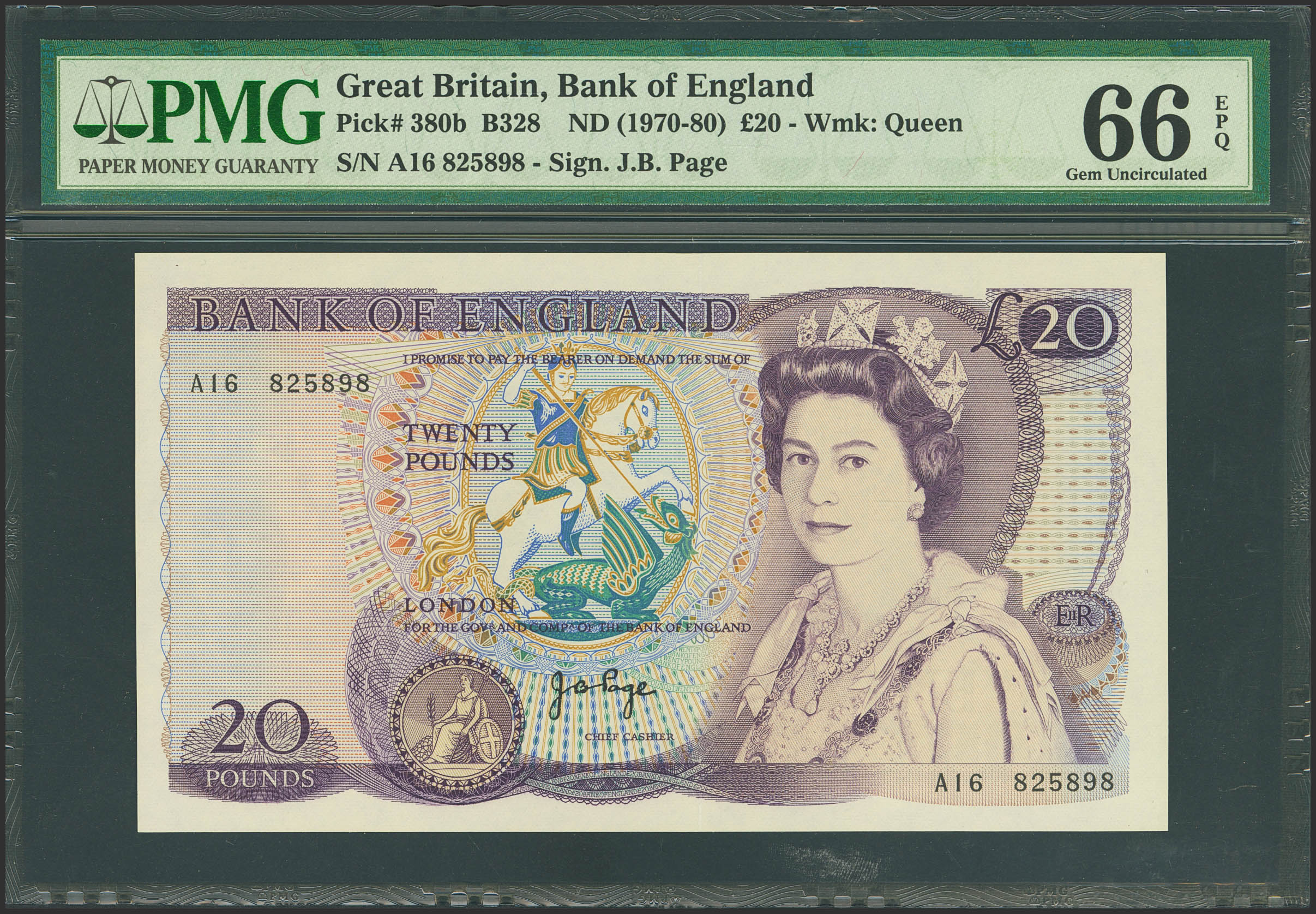 GREAT BRITAIN. 20 Pounds. (1970ca). (Pick: 380b). PMG66EPQ.