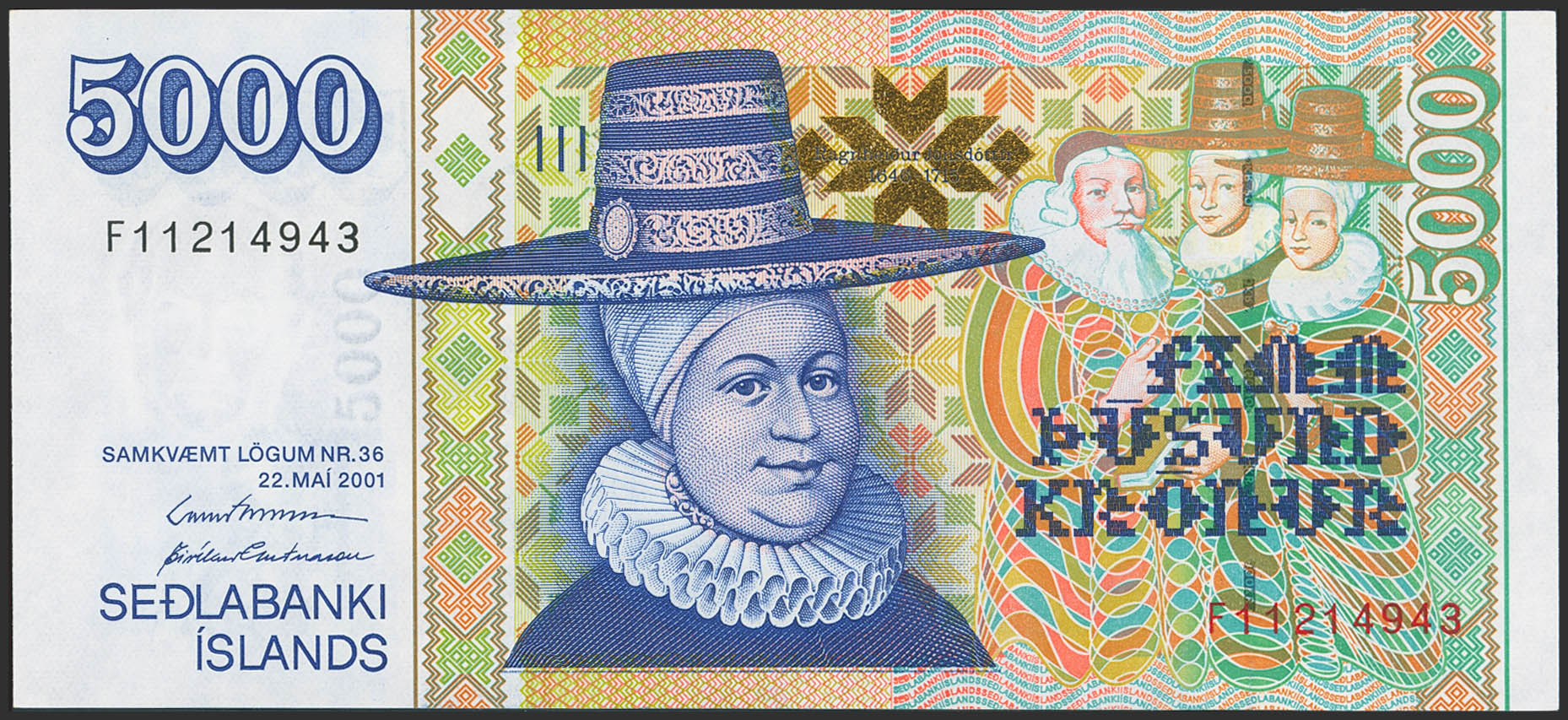 ICELAND. 5000 Kronur. 22 May 2001. (Pick: 60). Uncirculated.
