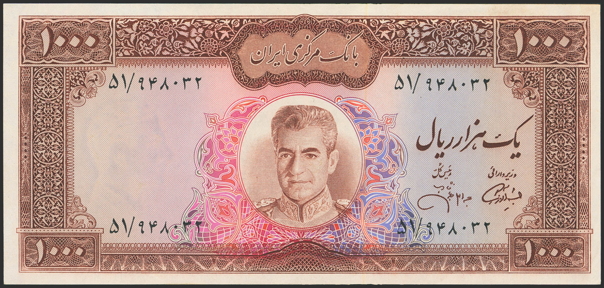 IRAN. 1000 Rials. (1971ca). (Pick: 94). More than Extremely Fine.