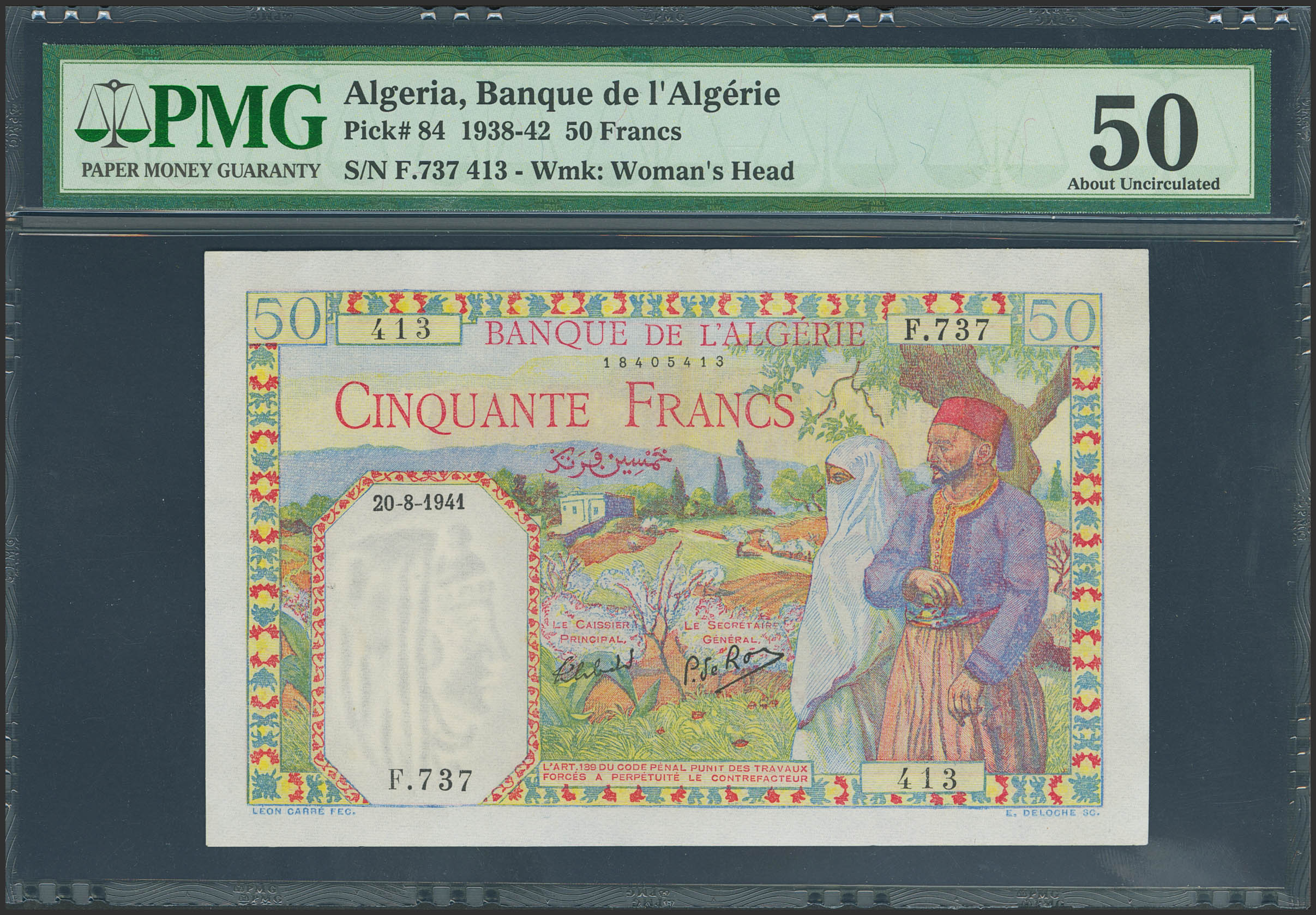 ALGERIA. 50 Francs. 20 August 1941. (Pick: 84). PMG50.