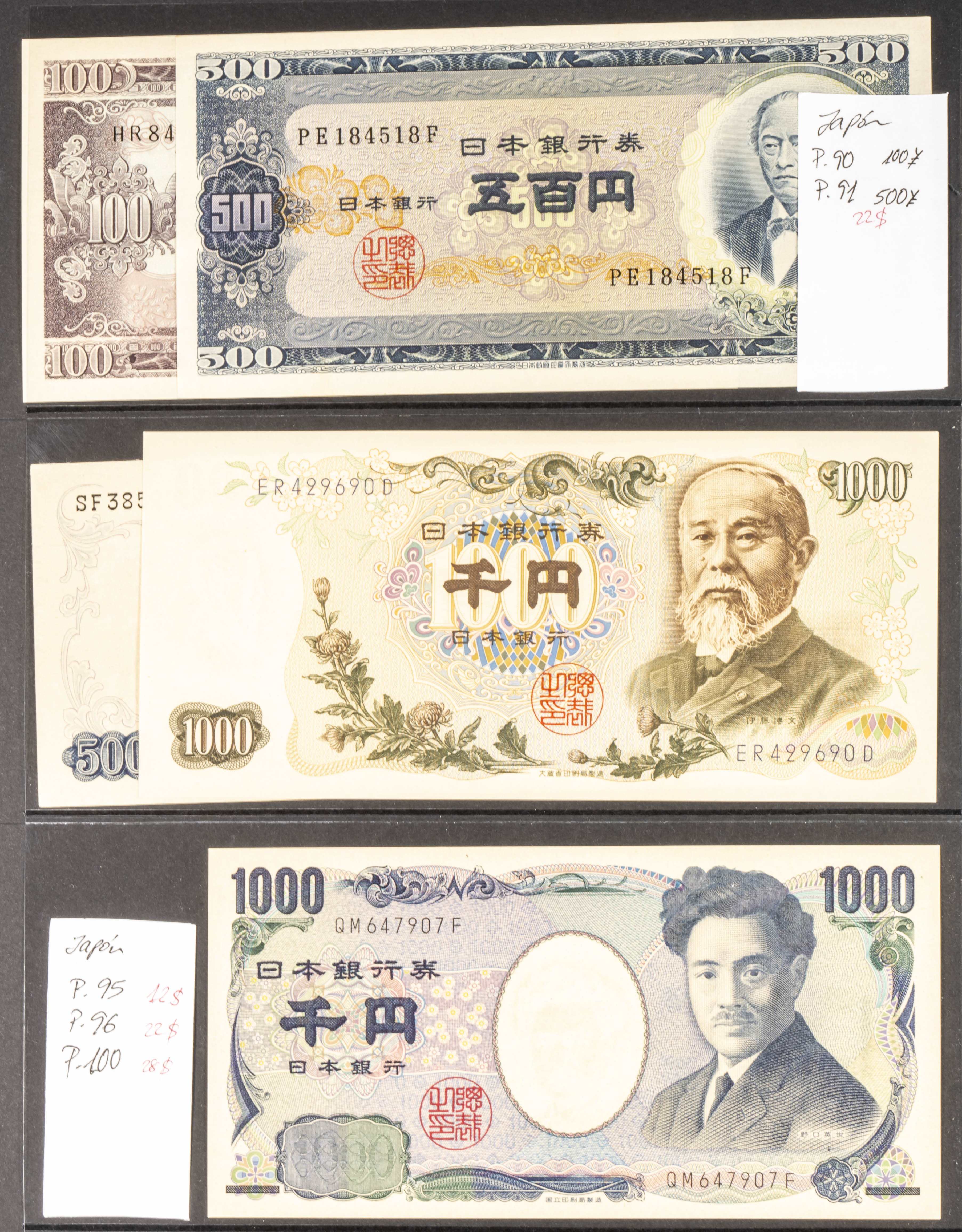 Set of 5 banknotes of Japan of various issues and most of them nice qualities. TO EXAMINE.