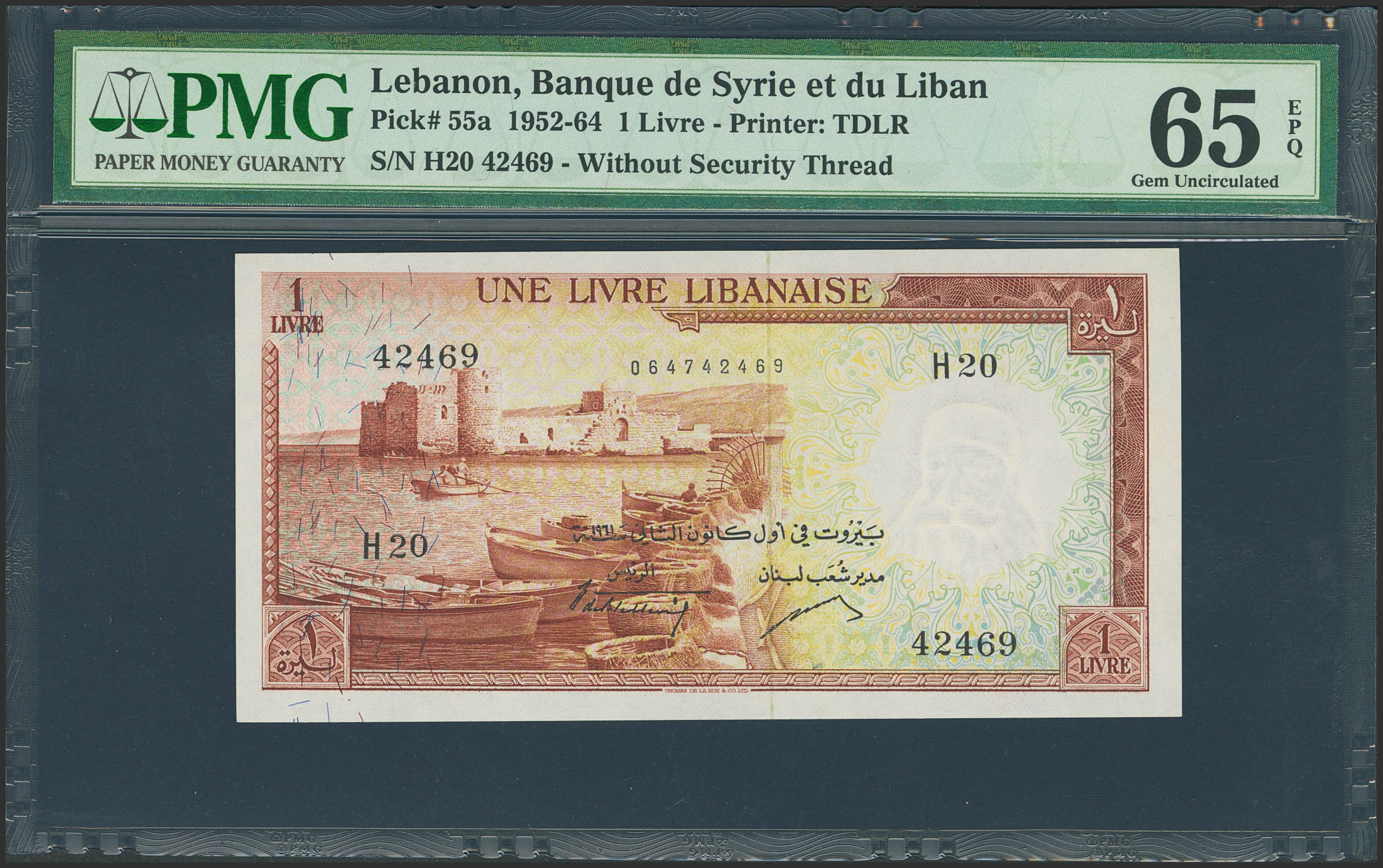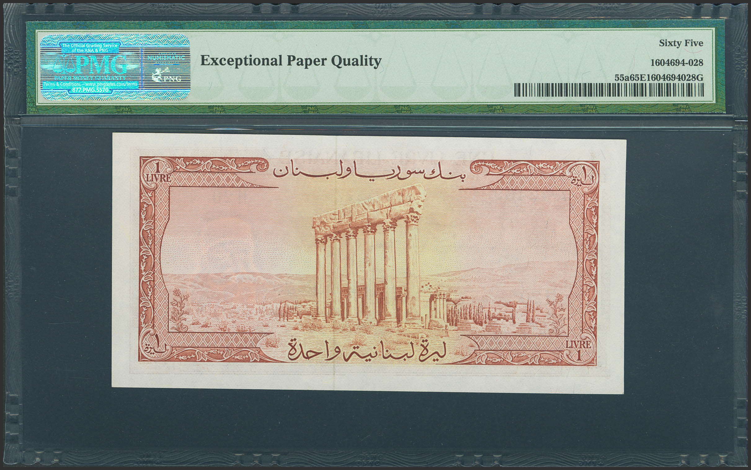 LEBANON. 1 Livre. (1952ca). (Pick: 55a). PMG65EPQ.