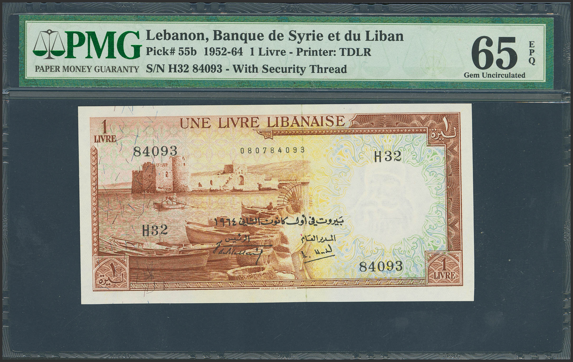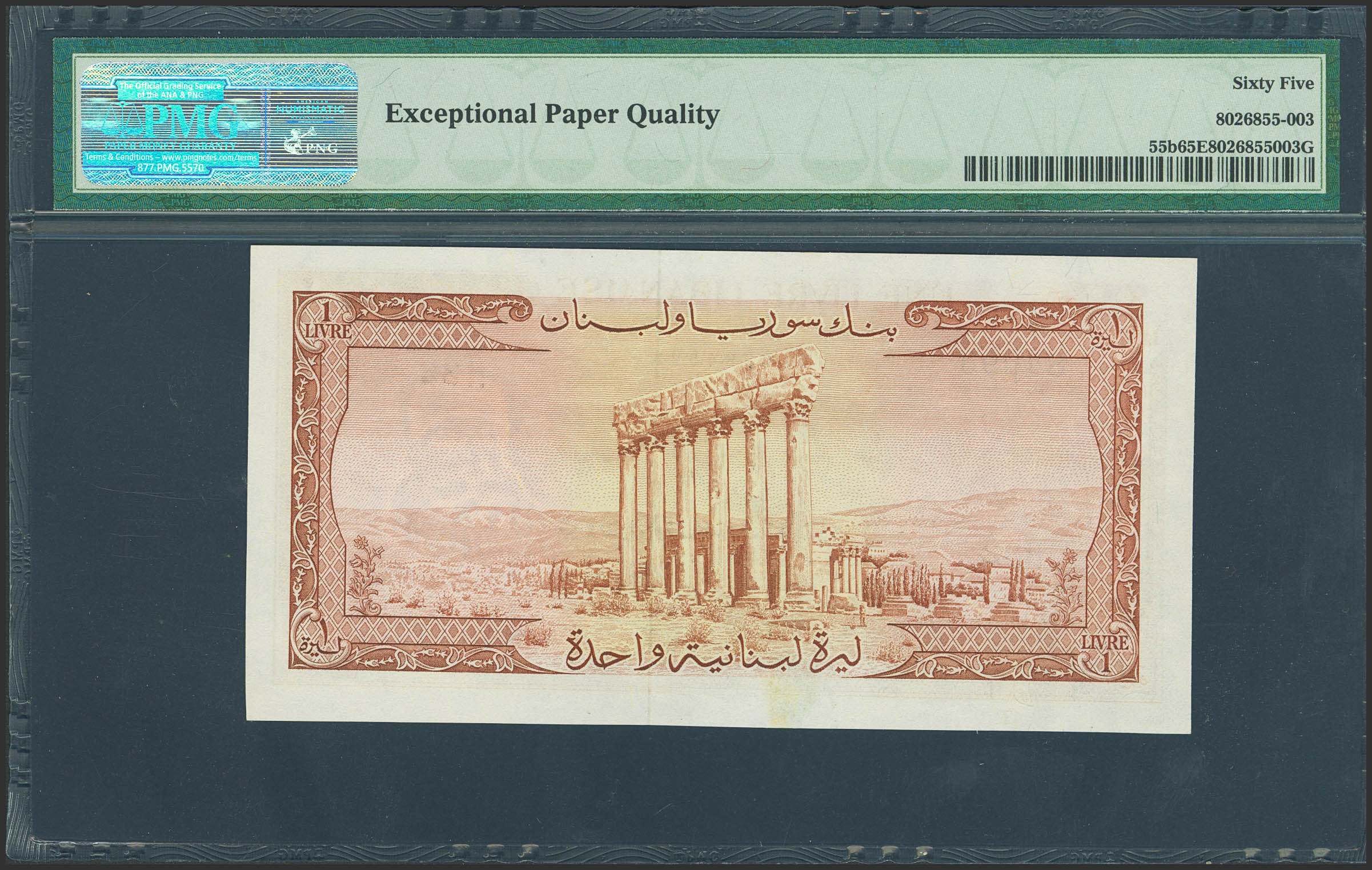 LEBANON. 1 Livre. (1952ca). (Pick: 55b). PMG65EPQ.