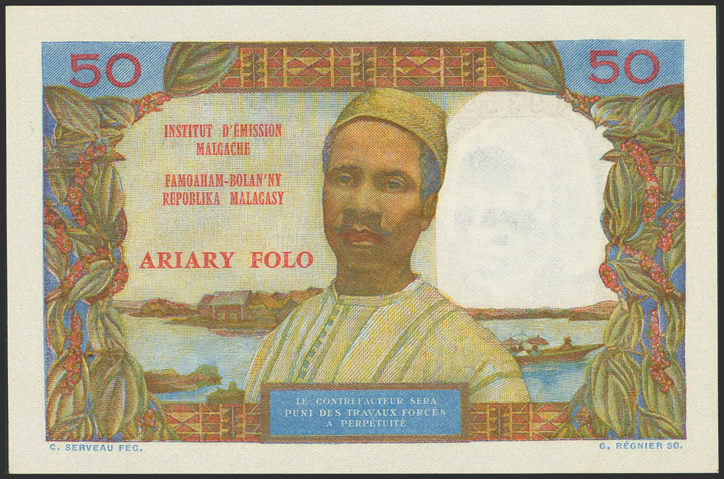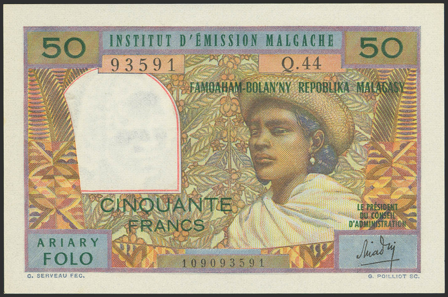 MADAGASCAR. 50 Francs. (1969ca). (Pick: 61). Less than Uncirculated.