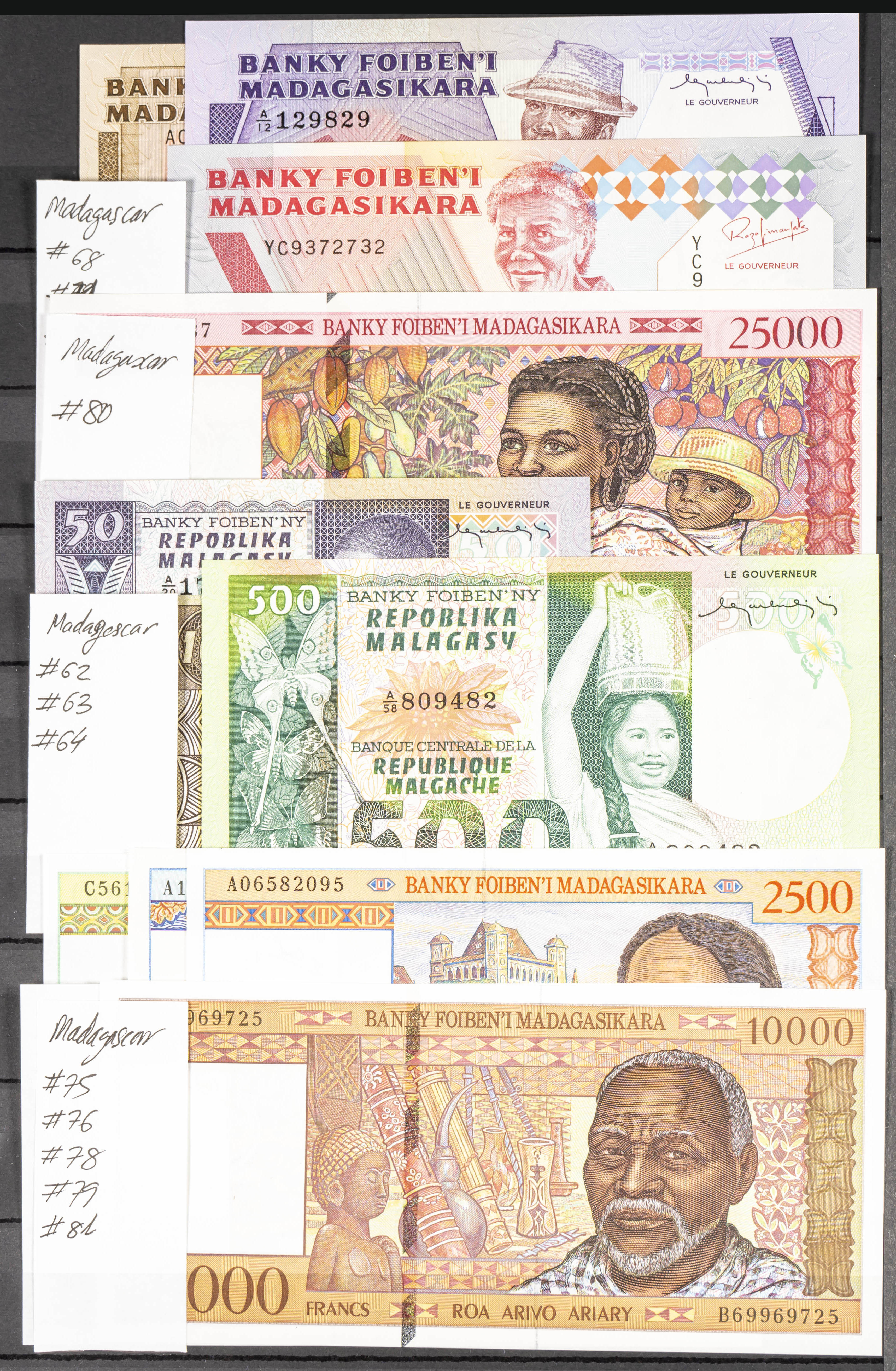 Set of 19 banknotes of Madagascar of various issues and most of them nice qualities. TO EXAMINE.