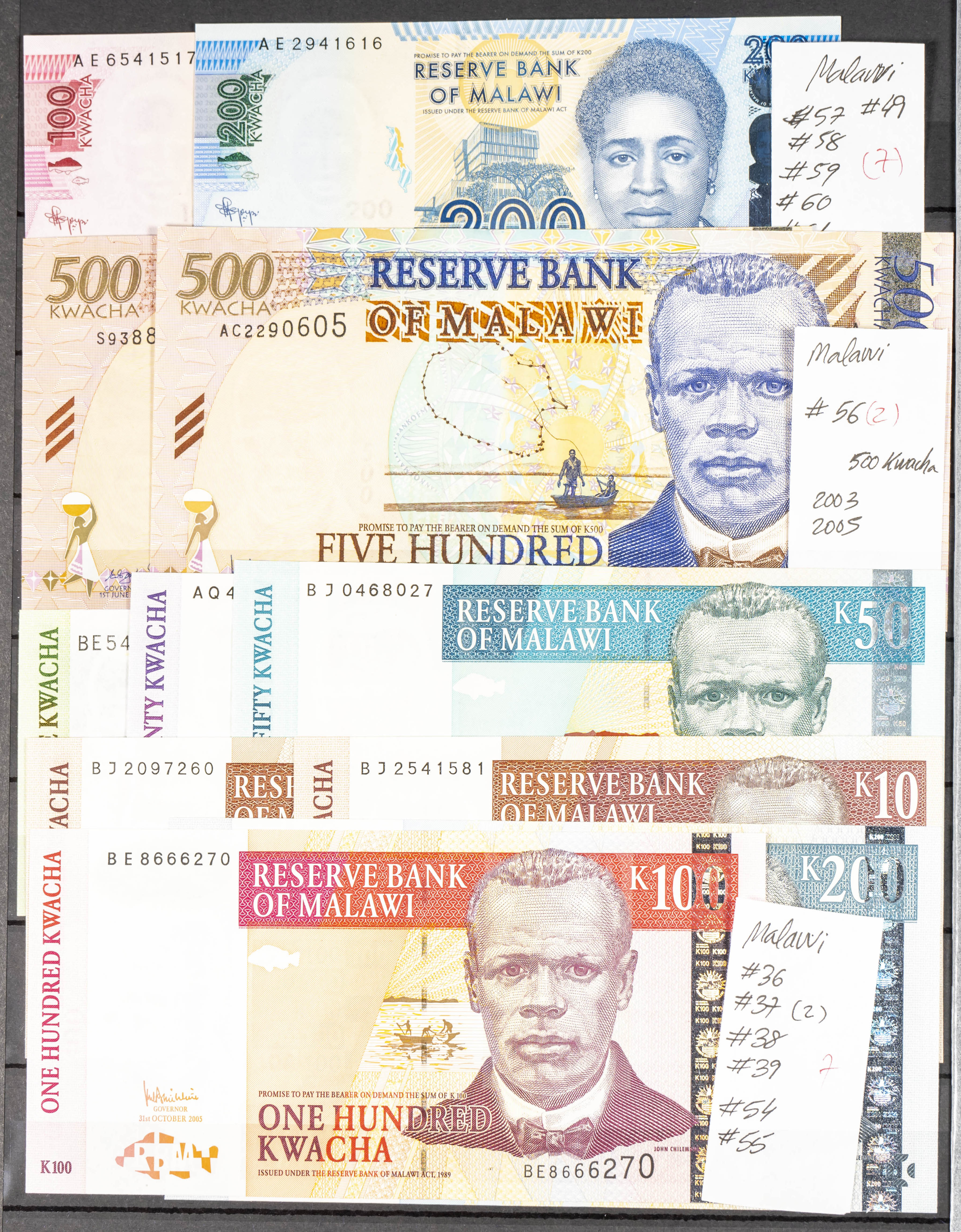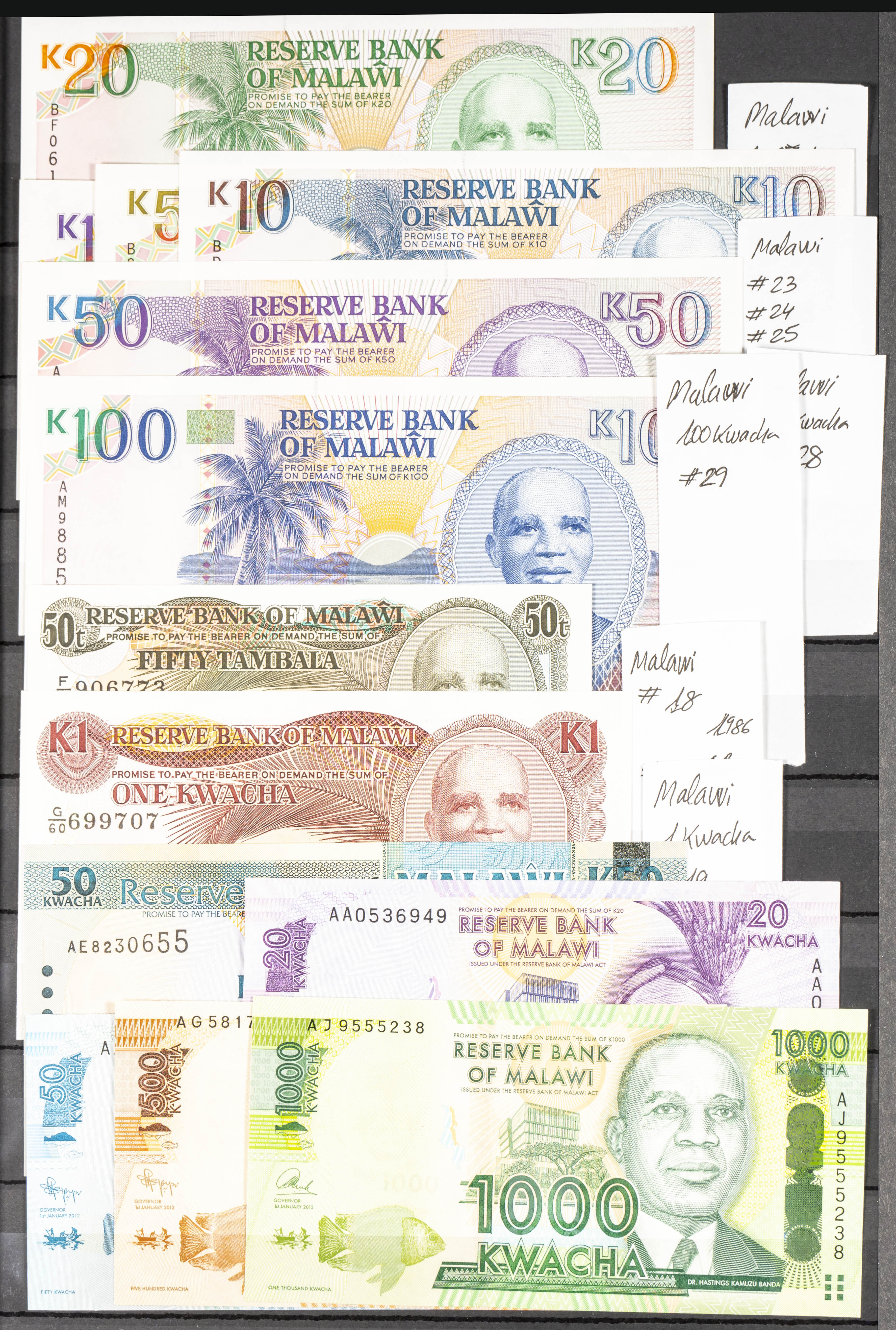 VERY INTERESTING SET of 19 banknotes of Malawi of various issues and most of them nice qualities. TO EXAMINE.