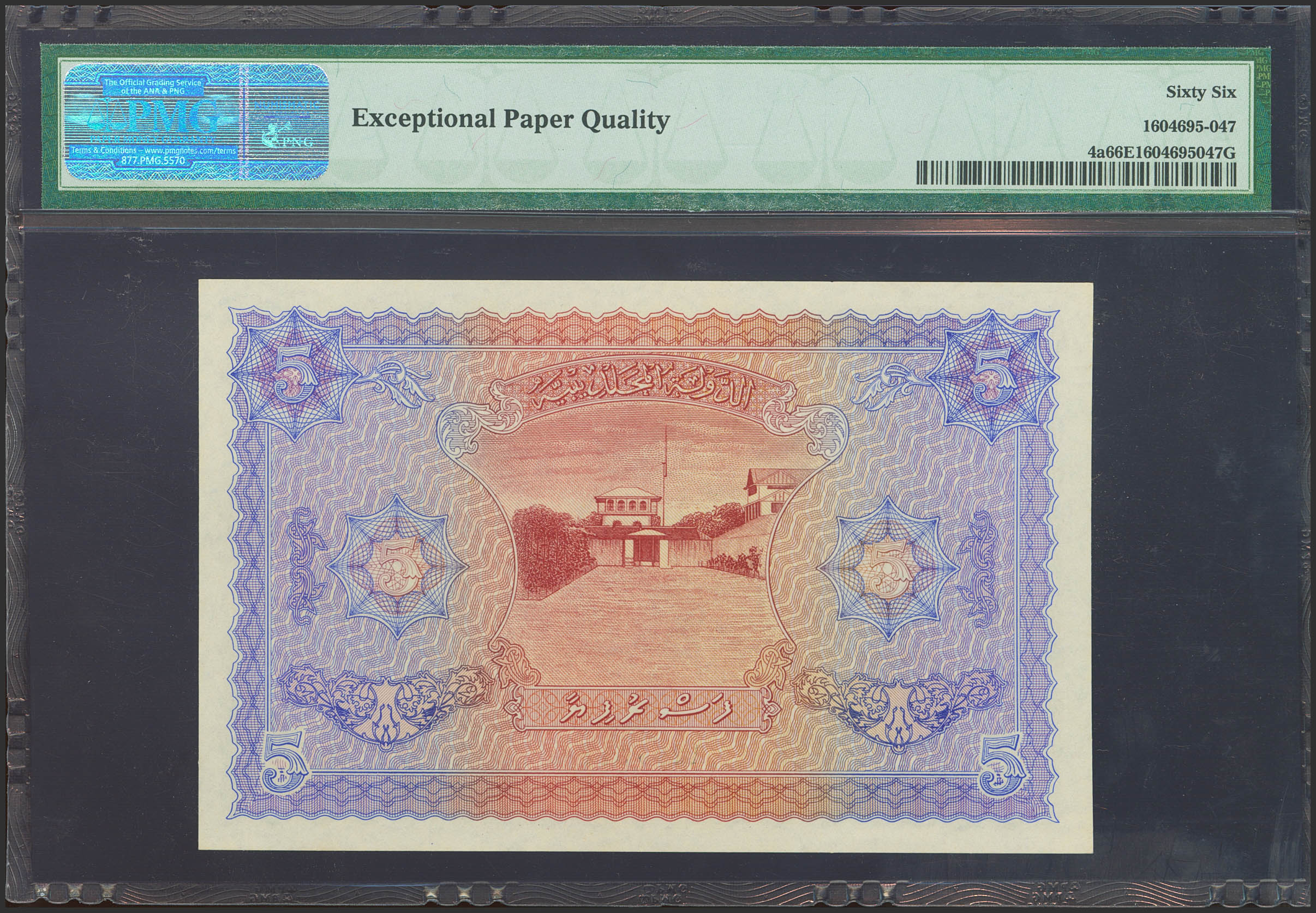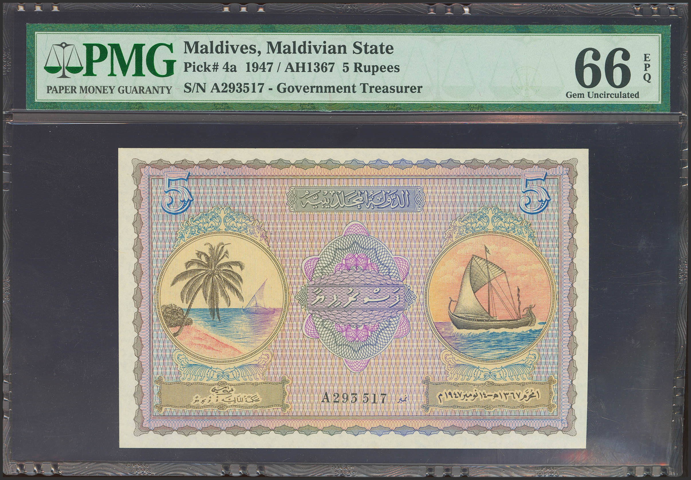 MALDIVES. 5 Rupees. 1947. (Pick: 4a). PMG66EPQ.