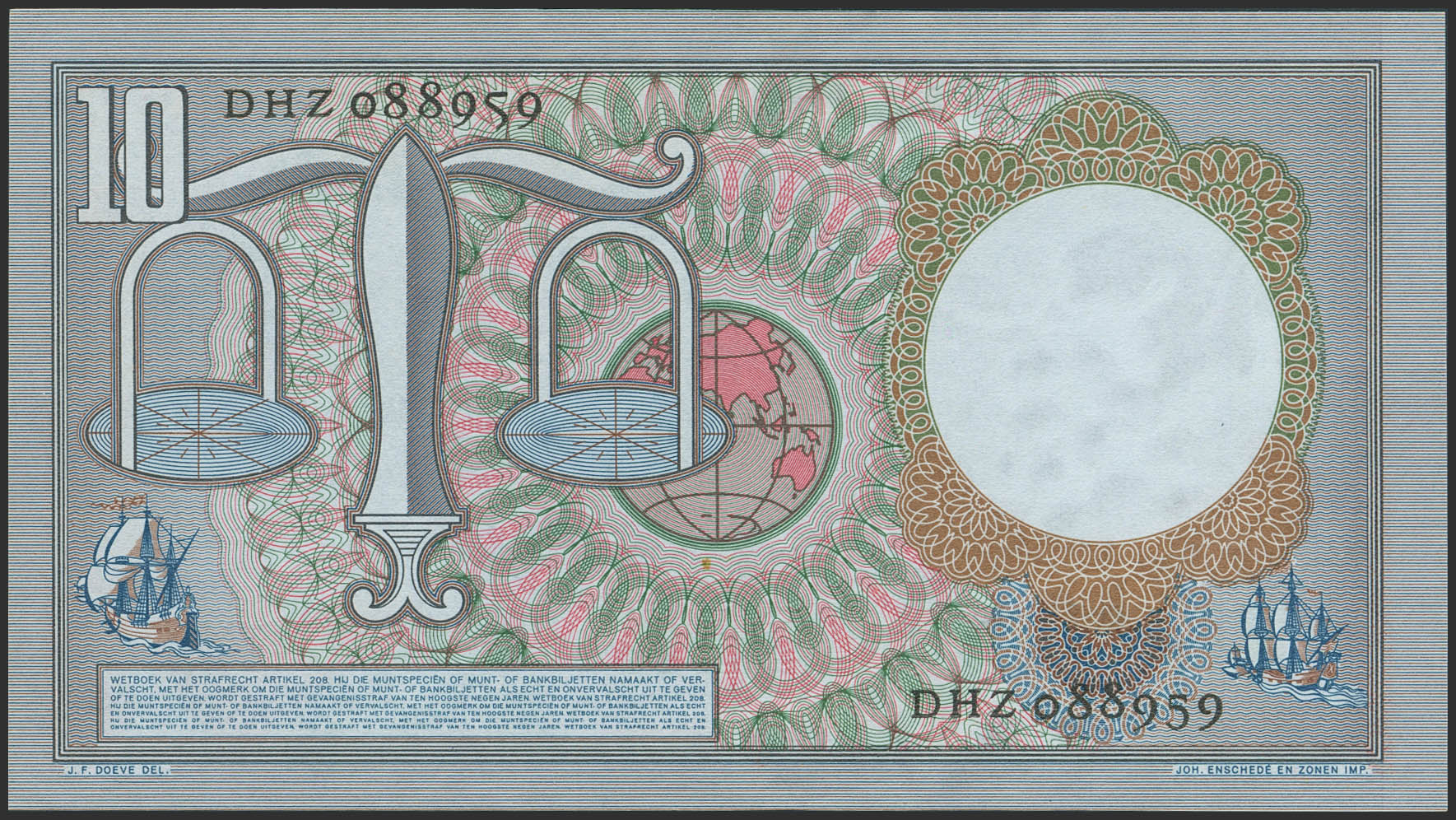 NETHERLANDS. 10 Gulden. 1953. (Pick: 85). Less than Uncirculated.