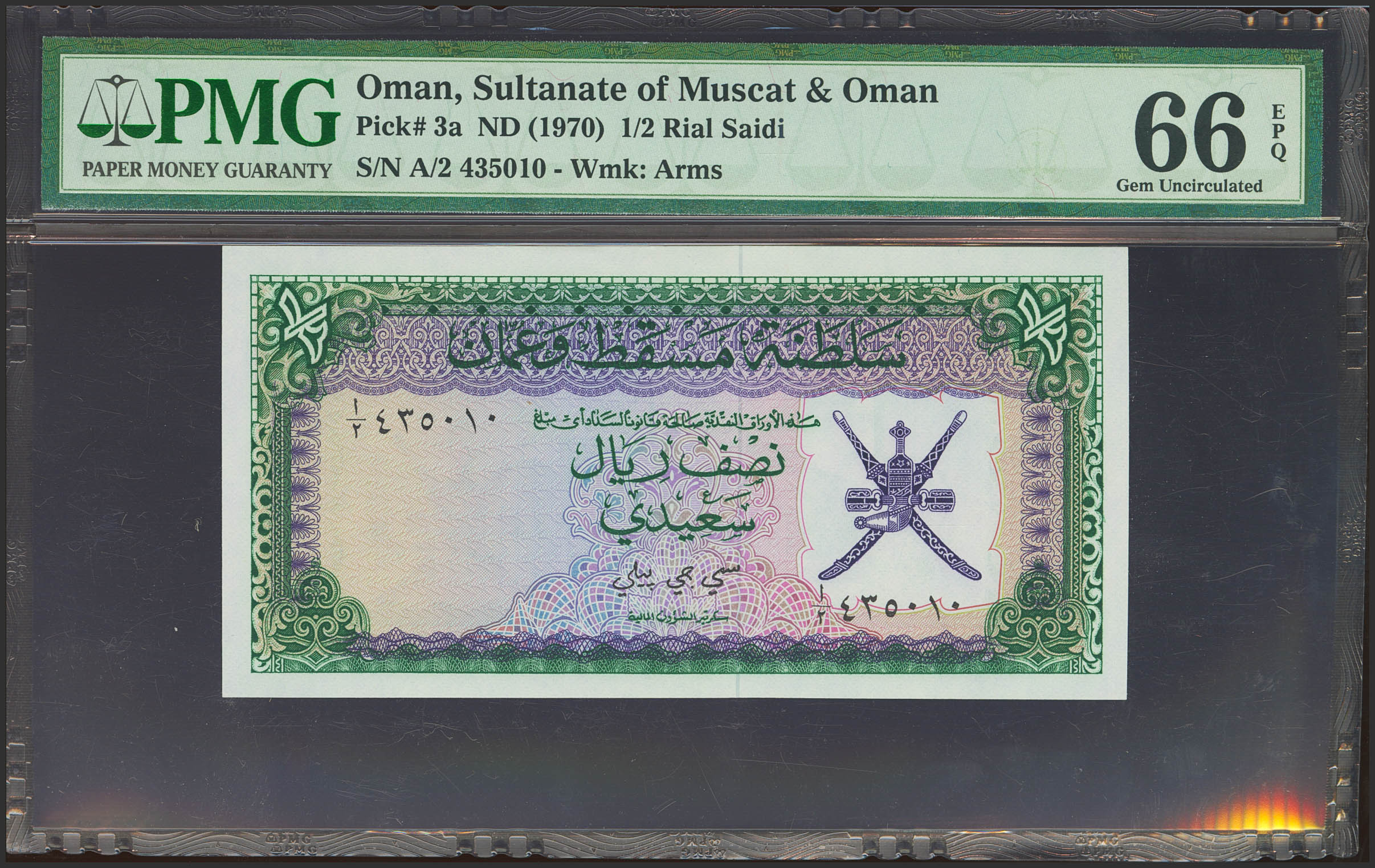 OMAN. ½ Rial Saidi. (1970ca). (Pick: 3a). PMG66EPQ.