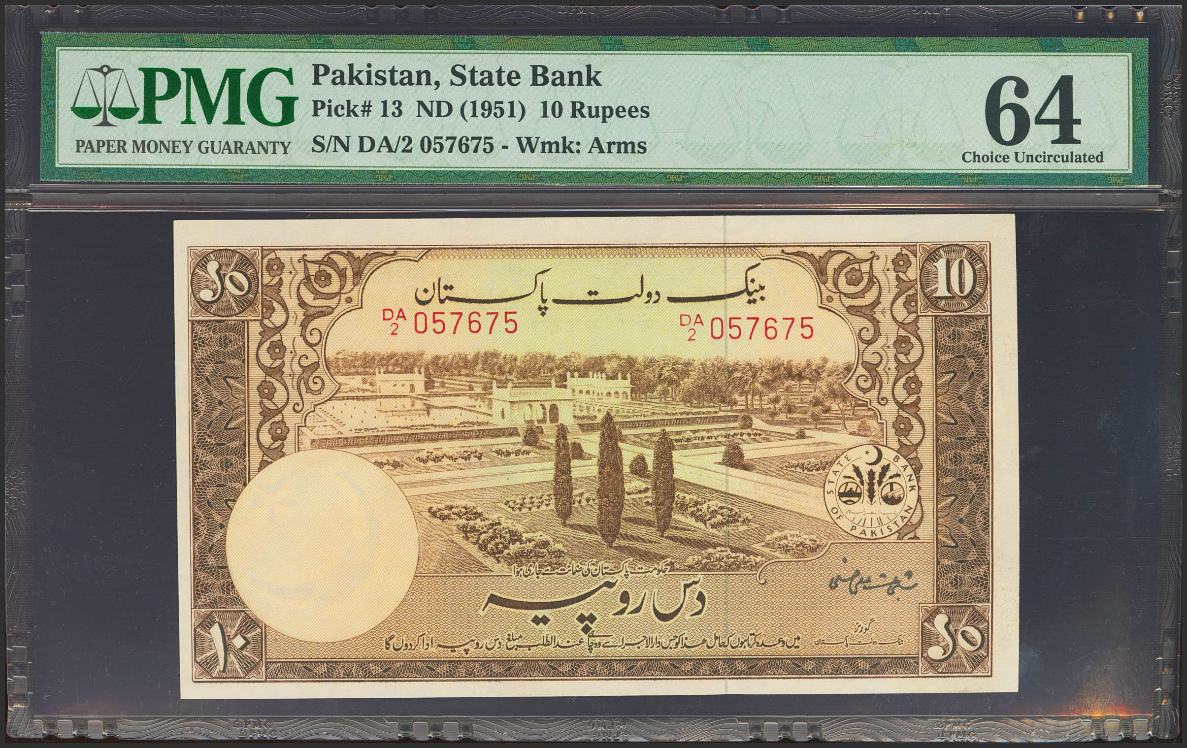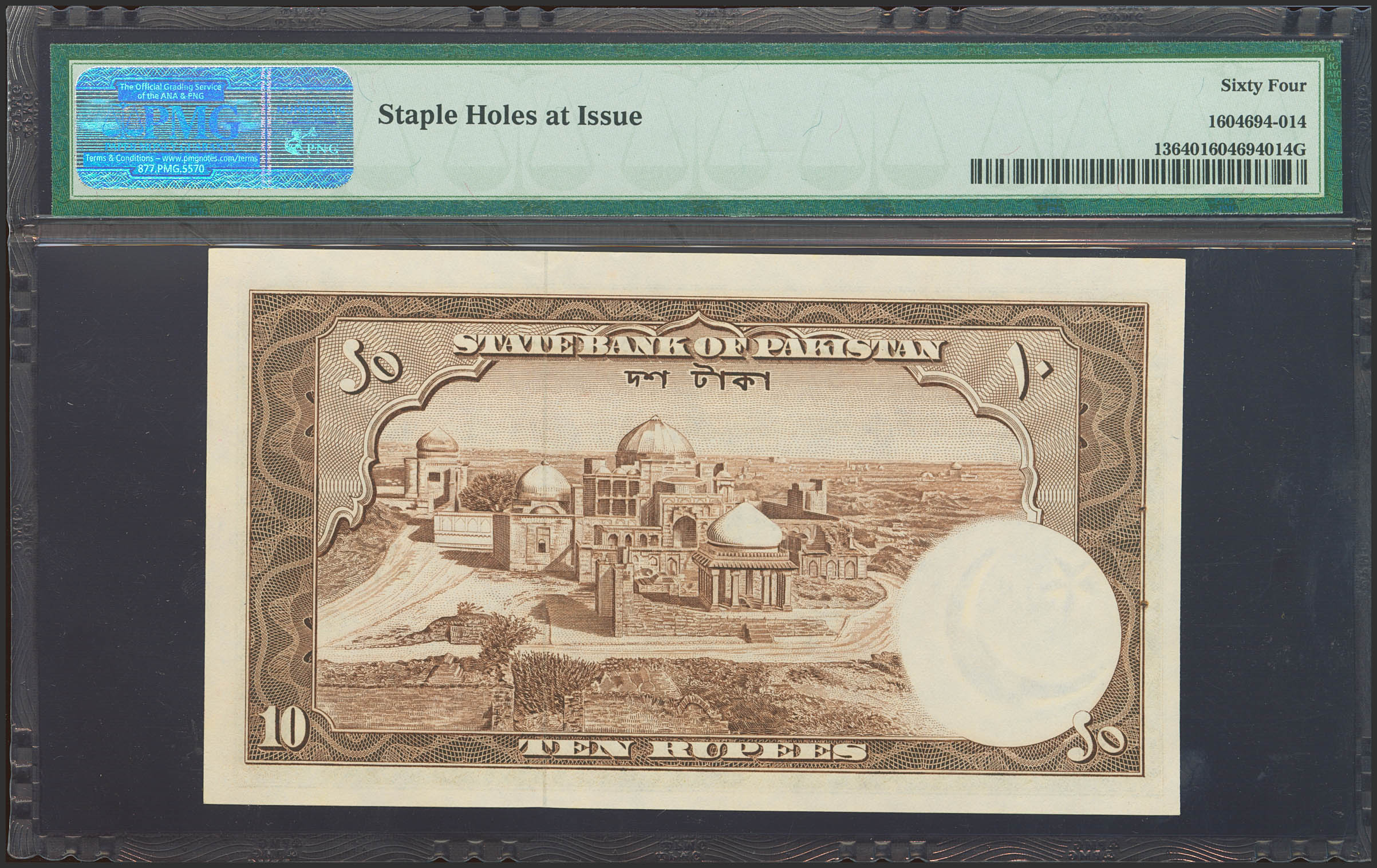 PAKISTAN. 10 Rupess. (1951ca). (Pick: 13). PMG64 (stape holes at issue).