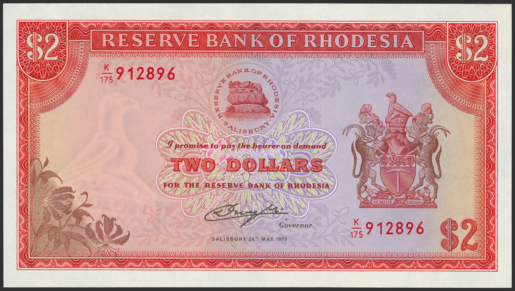 RHODESIA. 2 Dollars. 24 May 1979. (Pick: 31d). Less than Uncirculated.