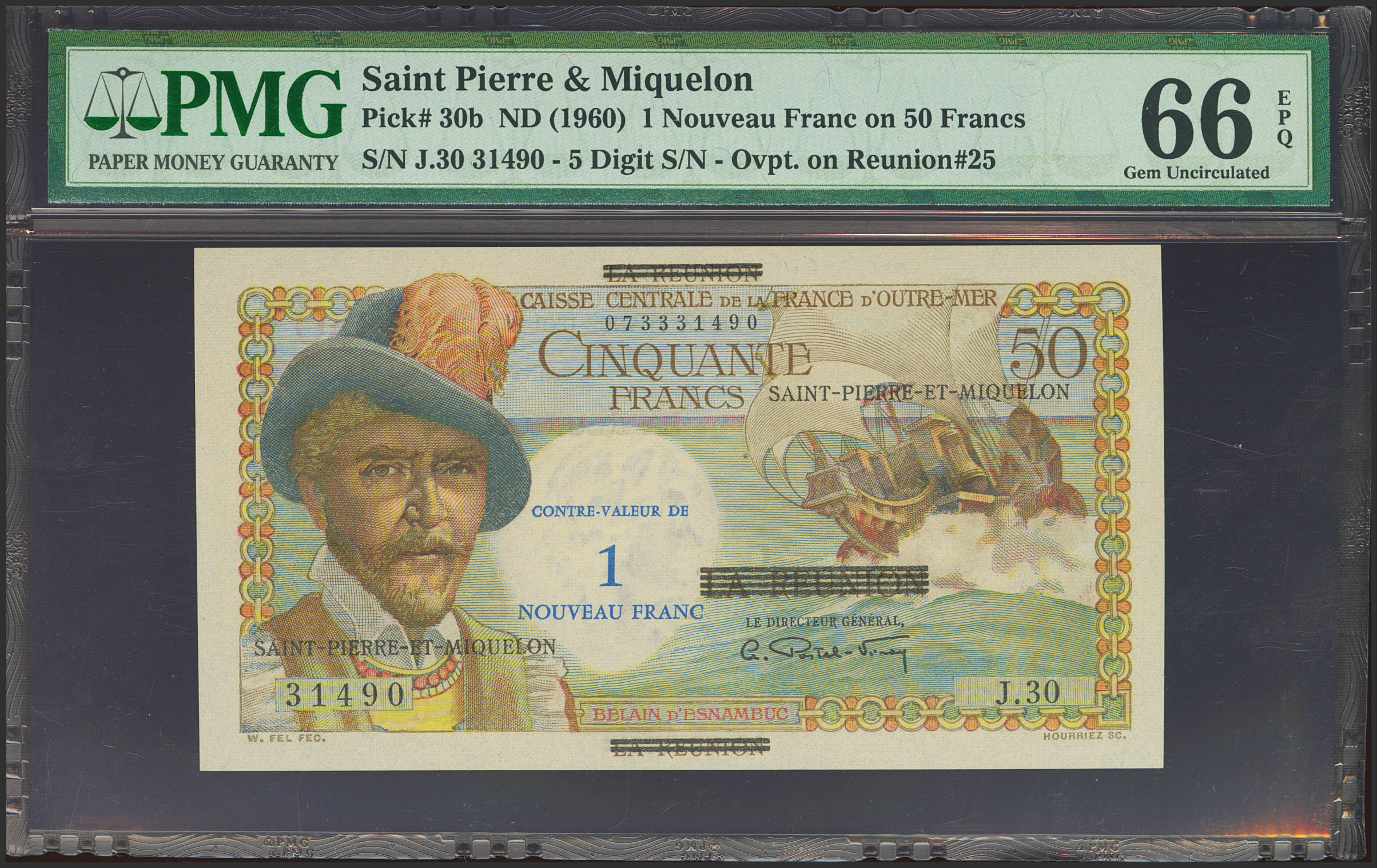 SAINT PIERRE AND MIQUELON. 1 Nouveau franc. (1960ca). (Pick: 30b). PMG66EPQ.