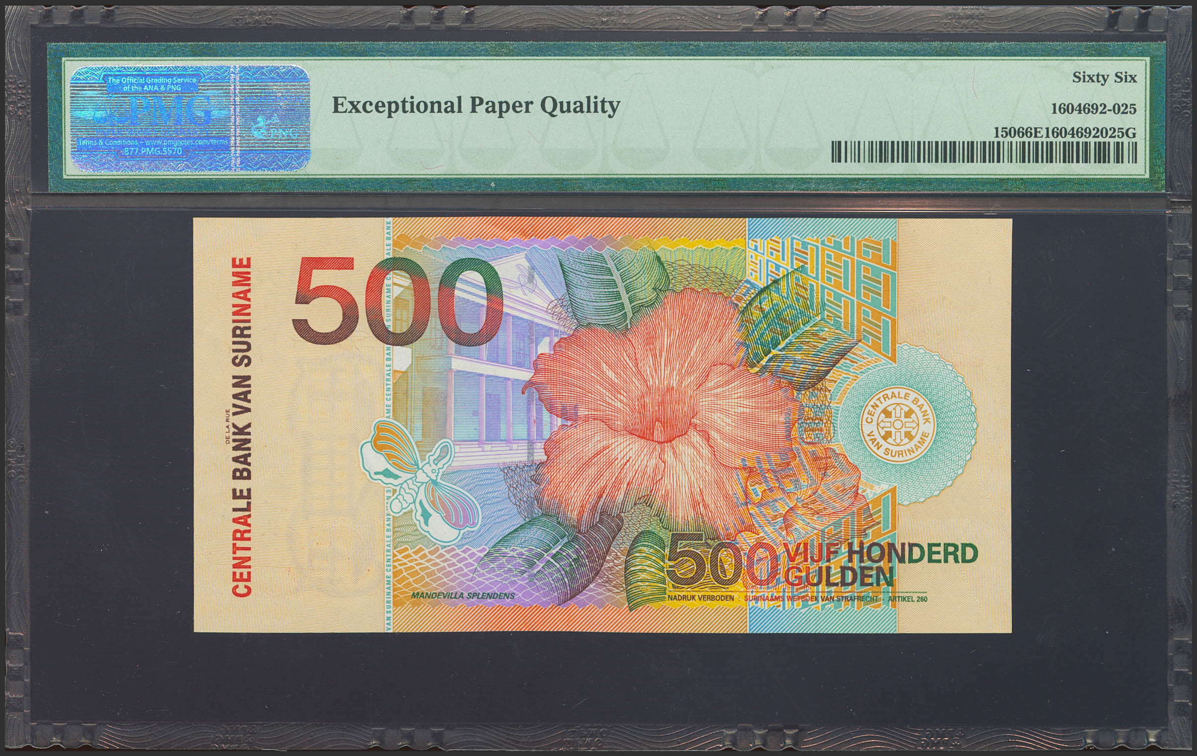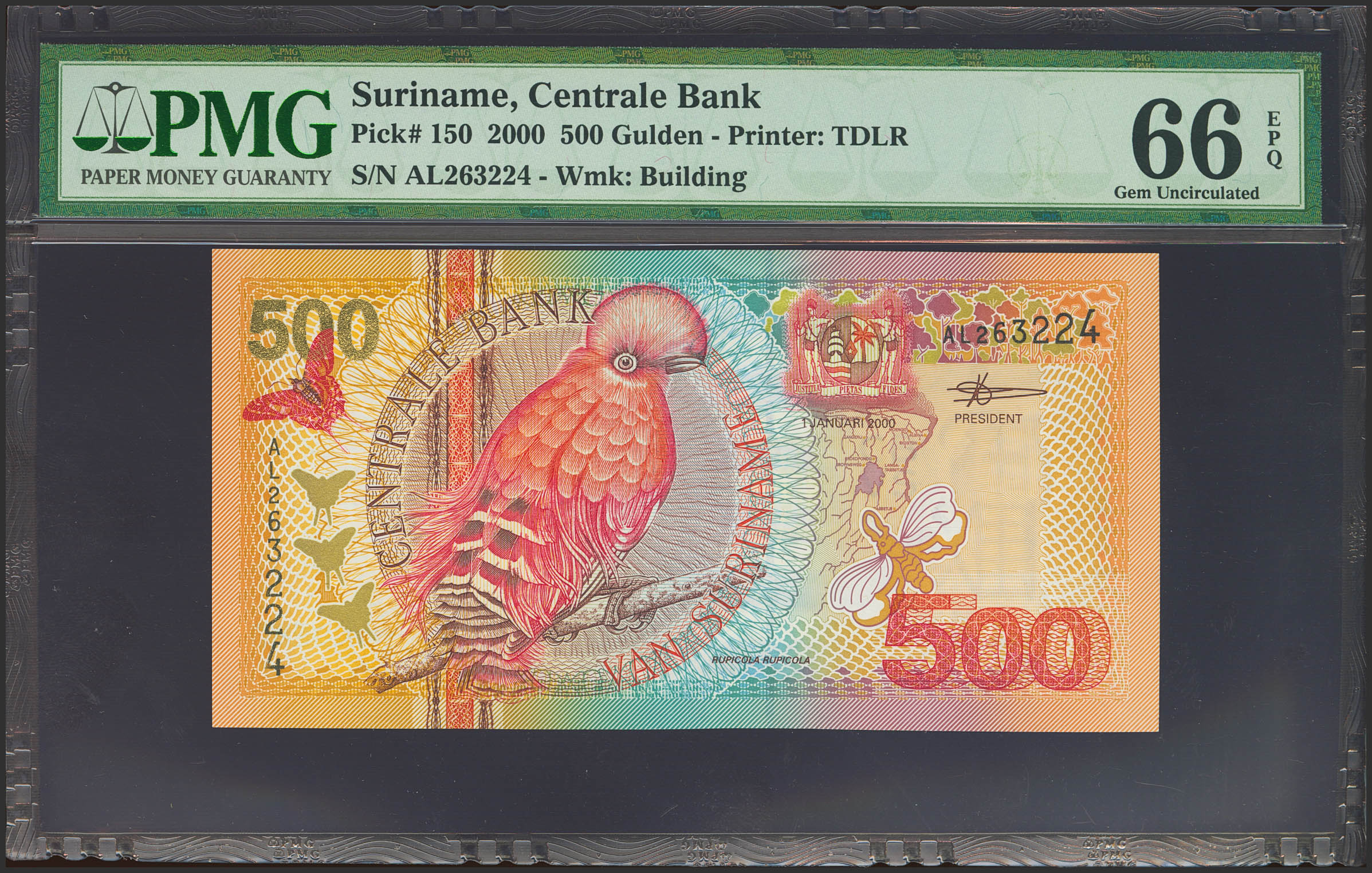 SURINAME. 500 Gulden. 1 January 2000. (Pick: 150). PMG66EPQ.