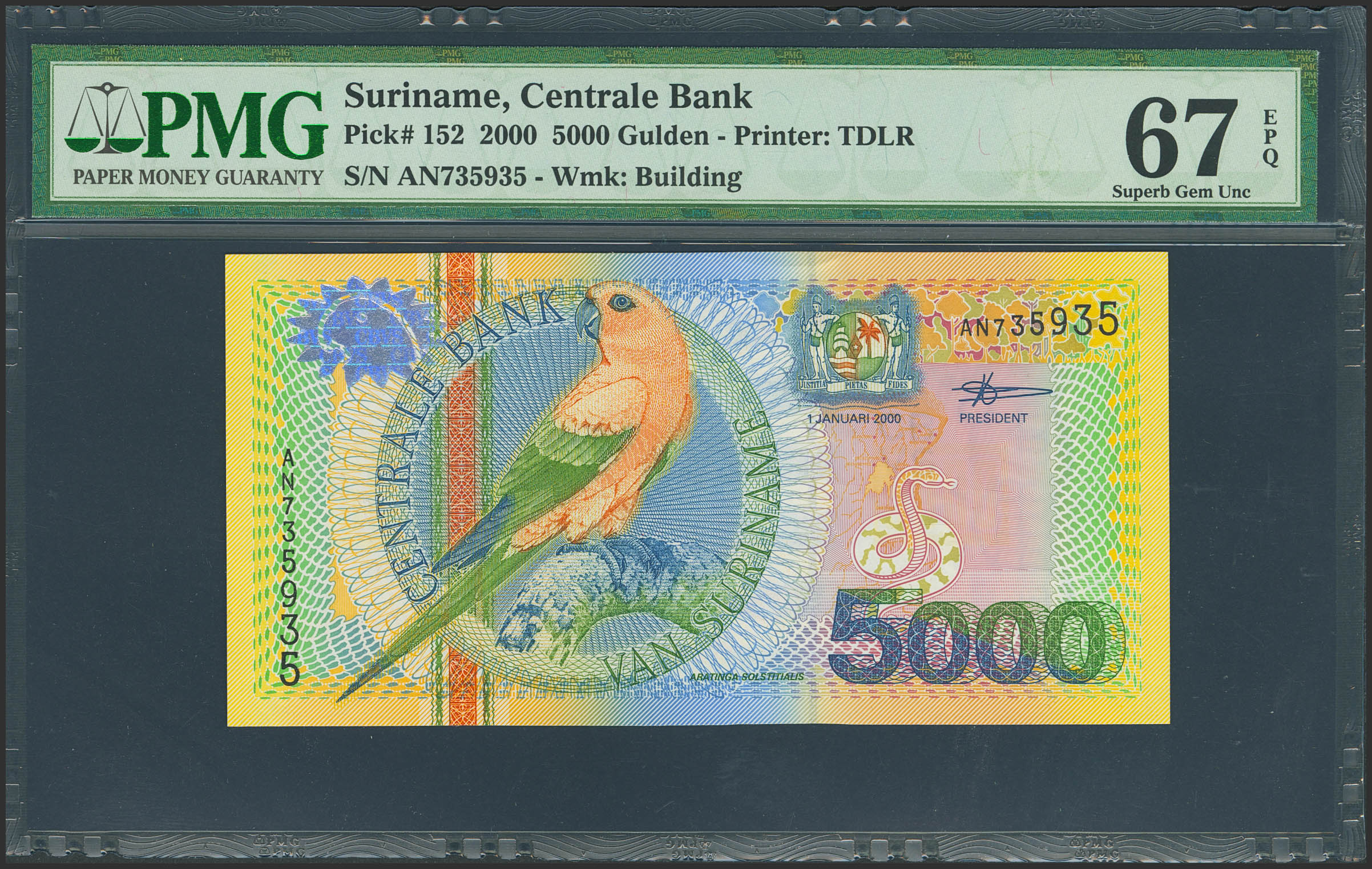 SURINAME. 5000 Gulden. 2000. (Pick: 152). PMG67EPQ.