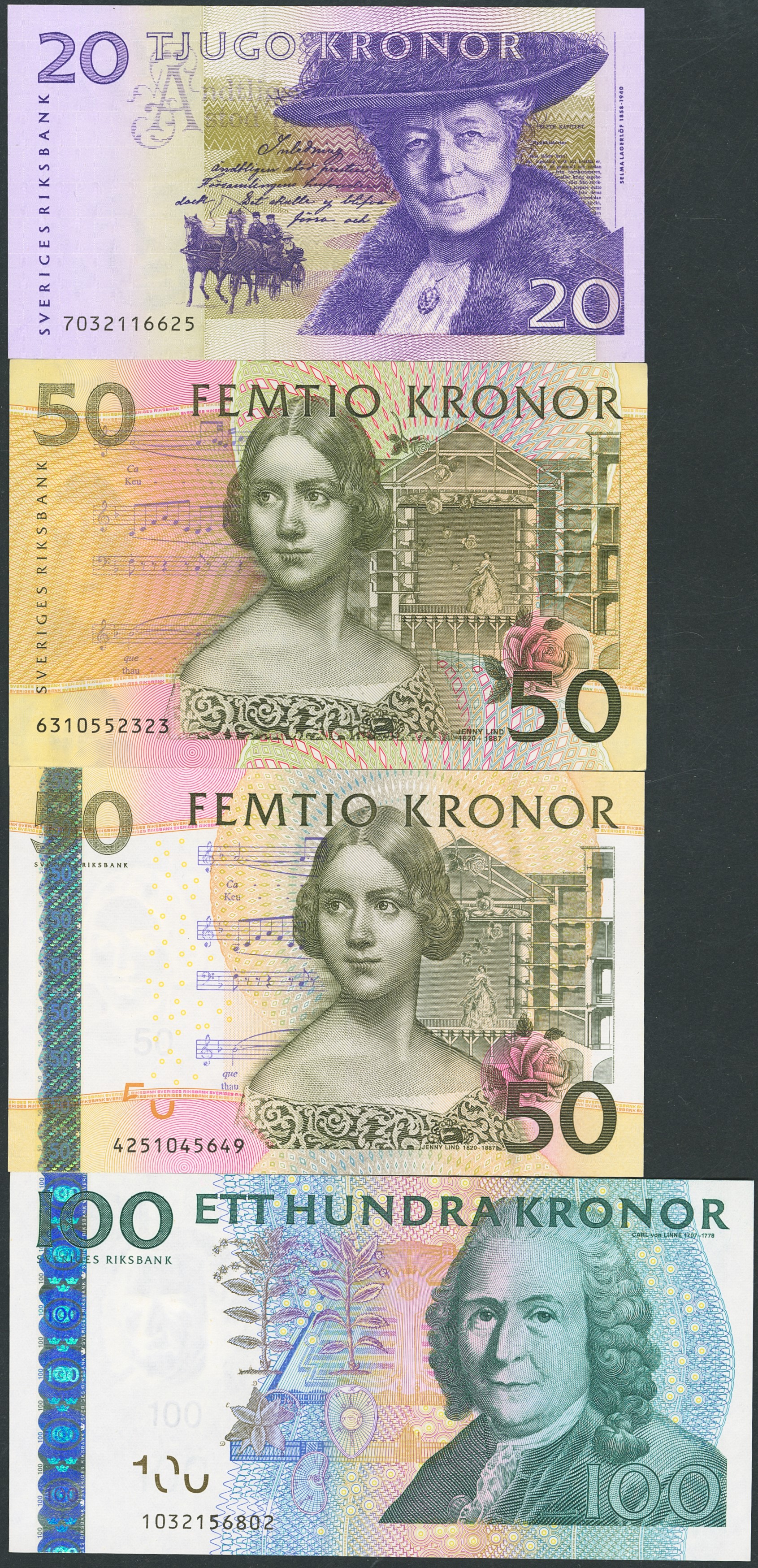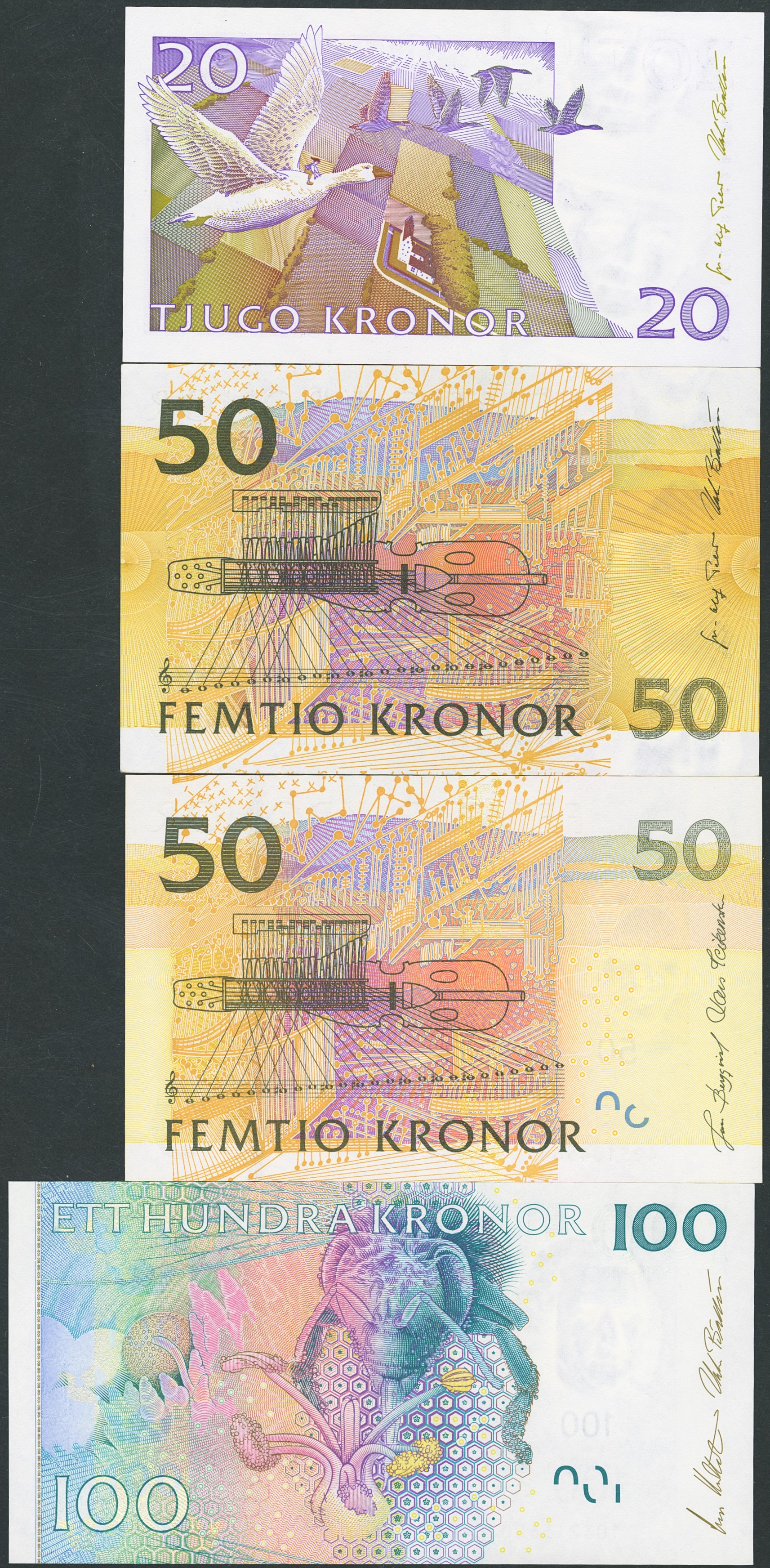 Set of 4 banknotes of Sweden of 20 Kronor, 50 Kronor (2) and 100 Kronor. (2003ca). (Pick: 62, 63, 64, 65). Uncirculated / About Uncirculated.
