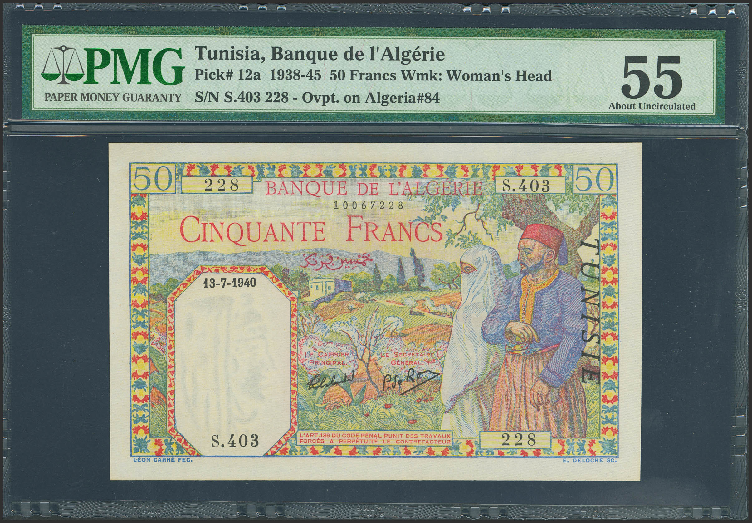 TUNISIA. 50 Francs. 13 July 1940. (Pick: 12a). PMG55.