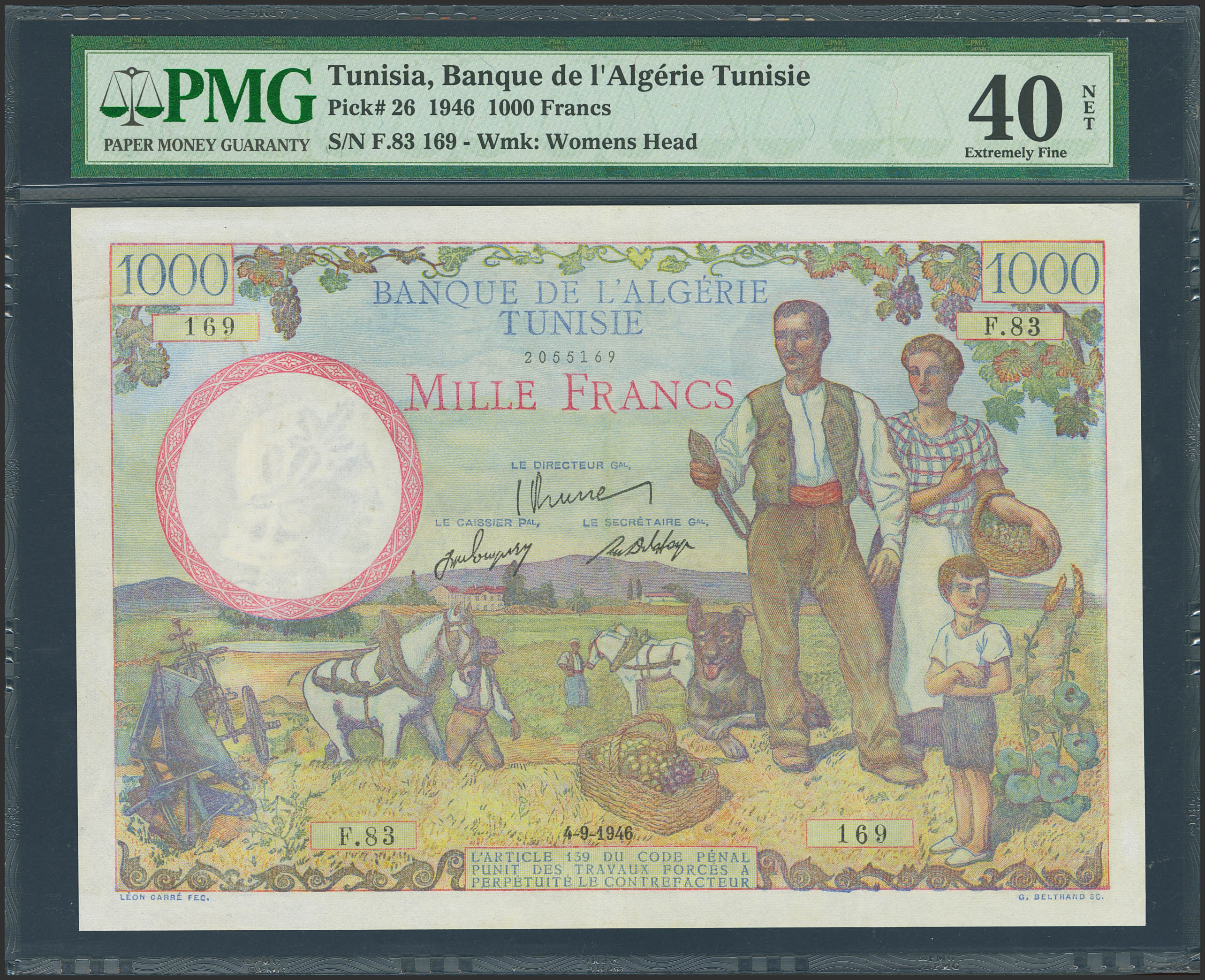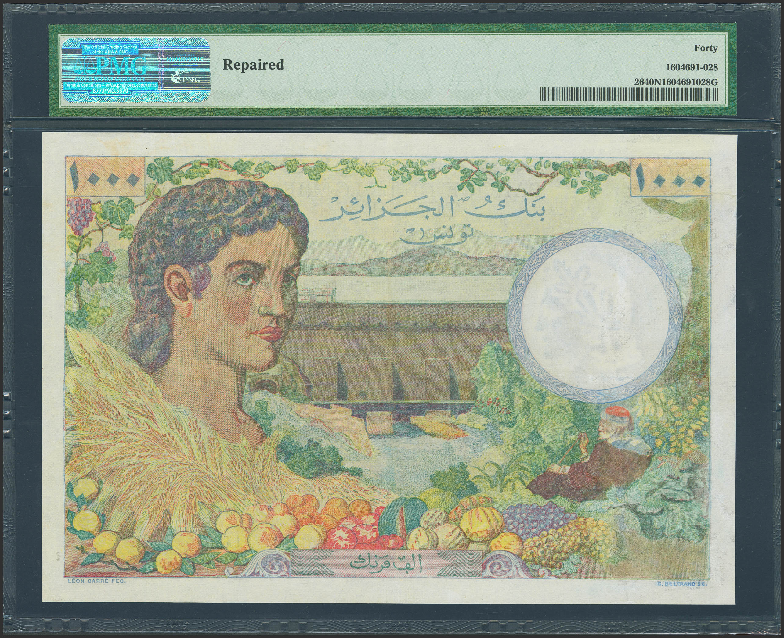 TUNISIA. 1000 Francs. 4 September 1946. (Pick: 26). Repaired. PMG40NET.