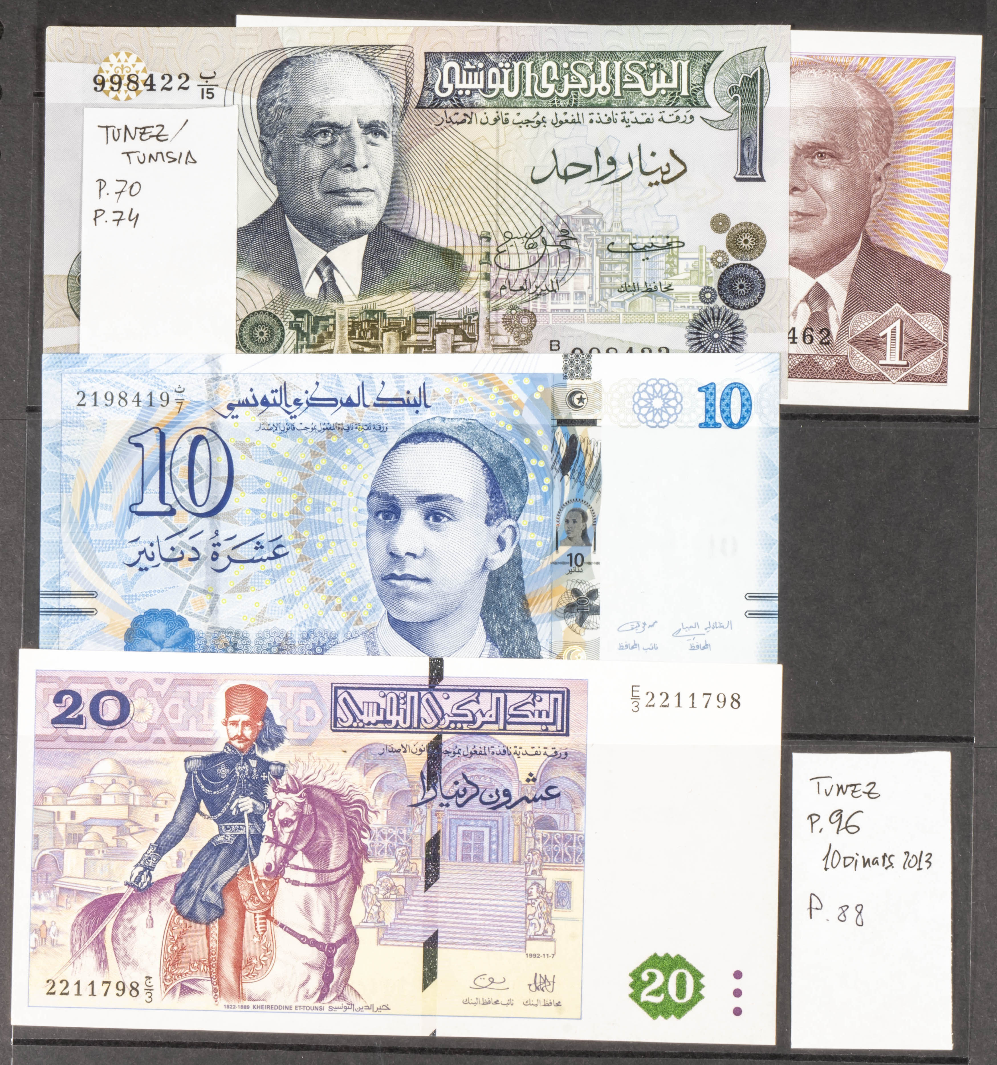 Set of 4 banknotes of Tunisia of various issues and different qualities. TO EXAMINE.