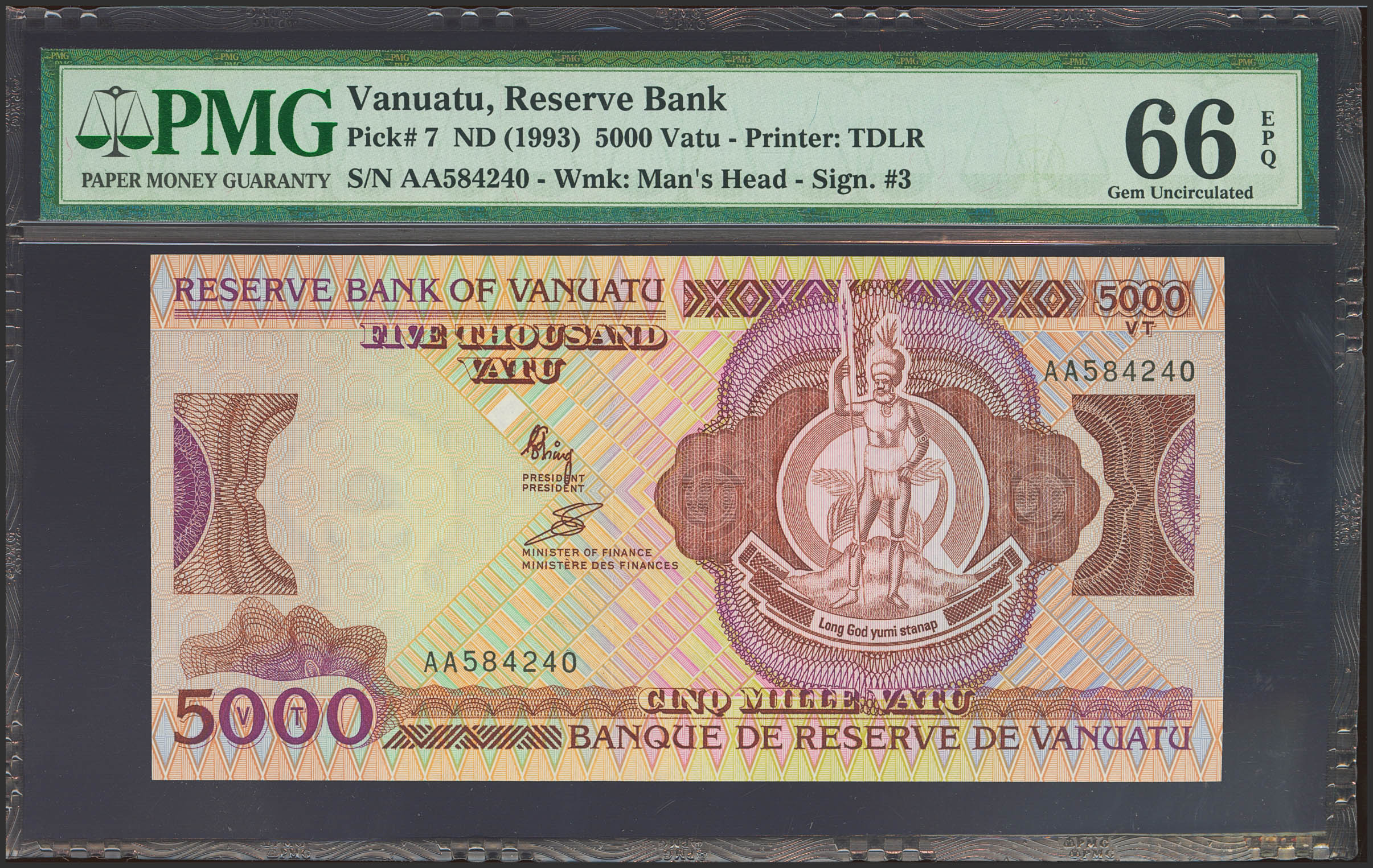 VANUATU. 5000 Vatu. 1993. (Pick: 7). PMG66EPQ.