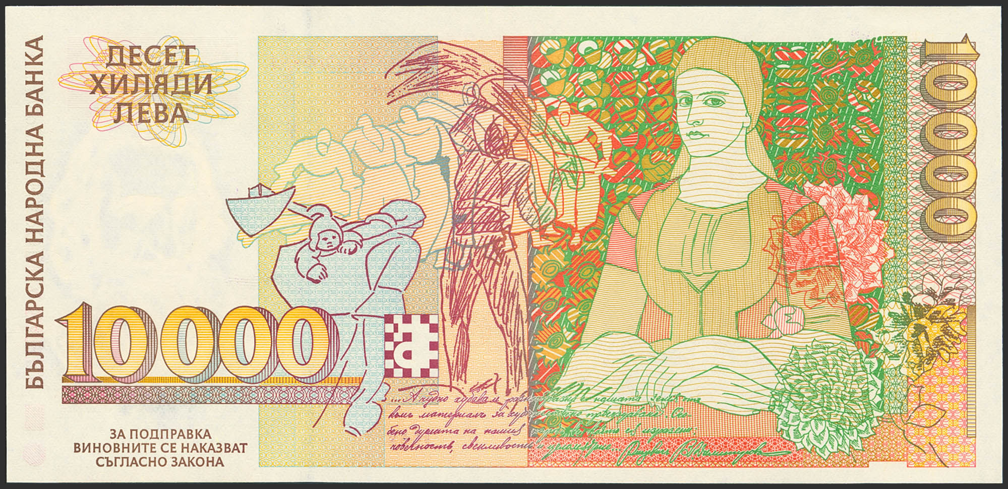 BULGARIA. 10000 Leva. 1996. (Pick: 109). Uncirculated.